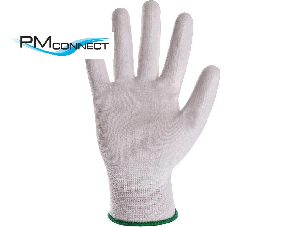 Pletené bezešvé rukavice, dlaně a prsty povrstveny polyuretanem, pružná manžeta. Doporučené aplikace: automobilový průmysl, elektronika, logistika, skladování, lehké montáže.Doplňkové parametry