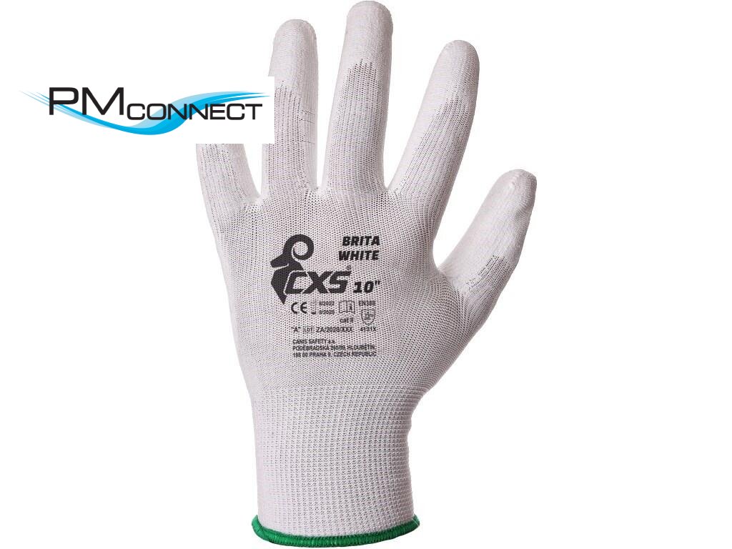 Rukavice CXS BRITA WHITE, s blistrem, máčené v polyuretanu, vel. 07