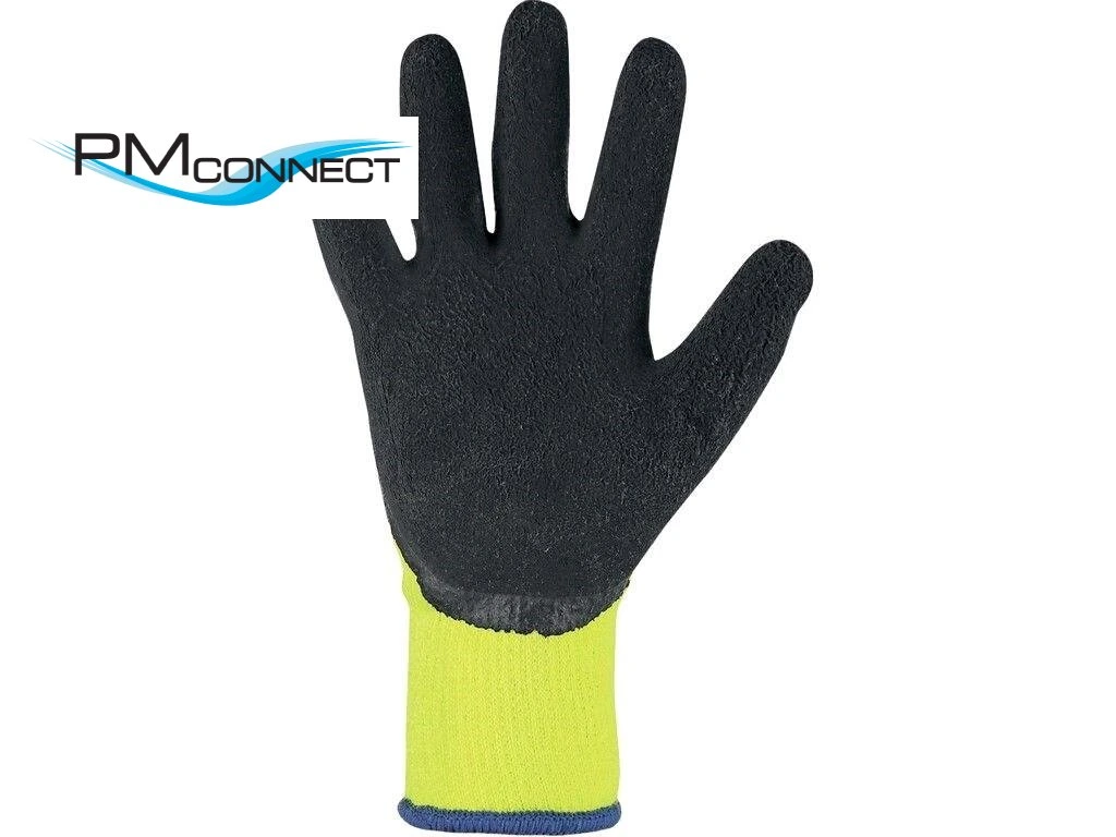 Zimní bezešvé pletené rukavice, akrylový úplet česaný z rubové strany, dlaň a prsty povrstveny latexovou pěnou, zdrsněný protiskluzový povrch, ochrana proti kontaktnímu teplu do 250 °C. Doporučené aplikace: stavebnictví, hobby, práce ve vlhkém a chladném prostředí, práce s horkými předměty do 250 °C, logistika, mrazírny, strojírenství, montážní práce, zemědělství, automobilový průmysl, chladírenský průmysl, údržbářský průmysl, komunální služby.Doplňkové parametry