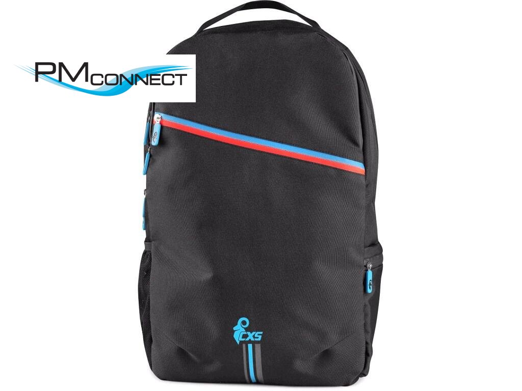 Batoh CXS LEONIS, černý s modro/červenými doplňky