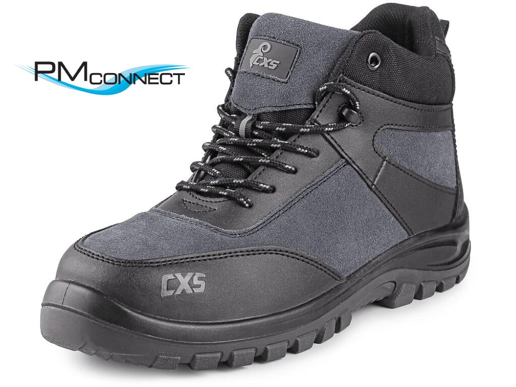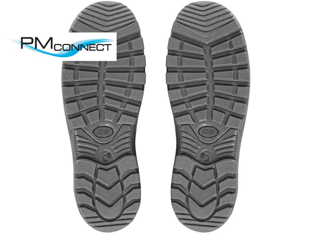 Kotníková pracovní obuv, kožená, s reflexními doplňky. Materiál: svršek z 1,4 - 1,6 mm broušené kůže kombinované s 1,6 - 1,8 mm hladkou štípenkou s PU filmem, polstrovaný textilní límec, prodyšná a oděru odolná mesh podšívka, vyjímatelná, pohodlná a anatomická vložka z polyesteru, podešev: PU-PU, protiskluzová, antistatická, olejivzdorná.Doplňkové parametry