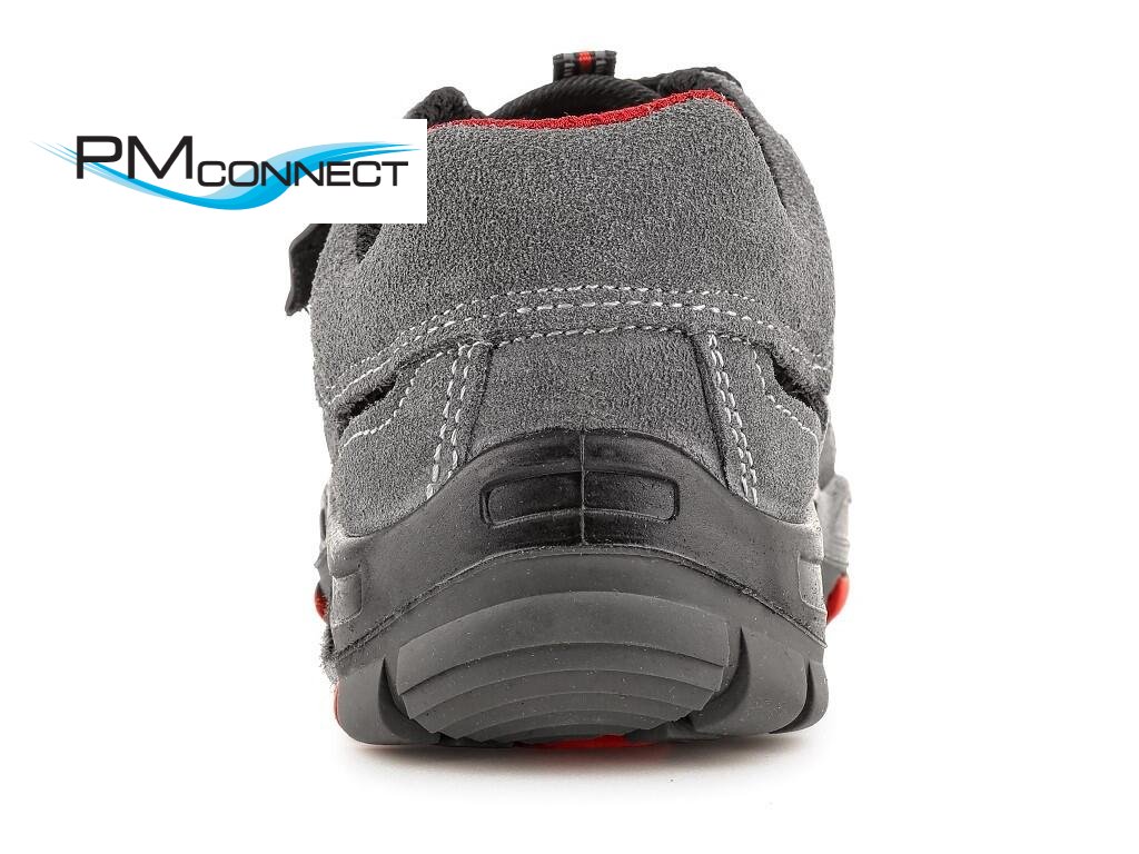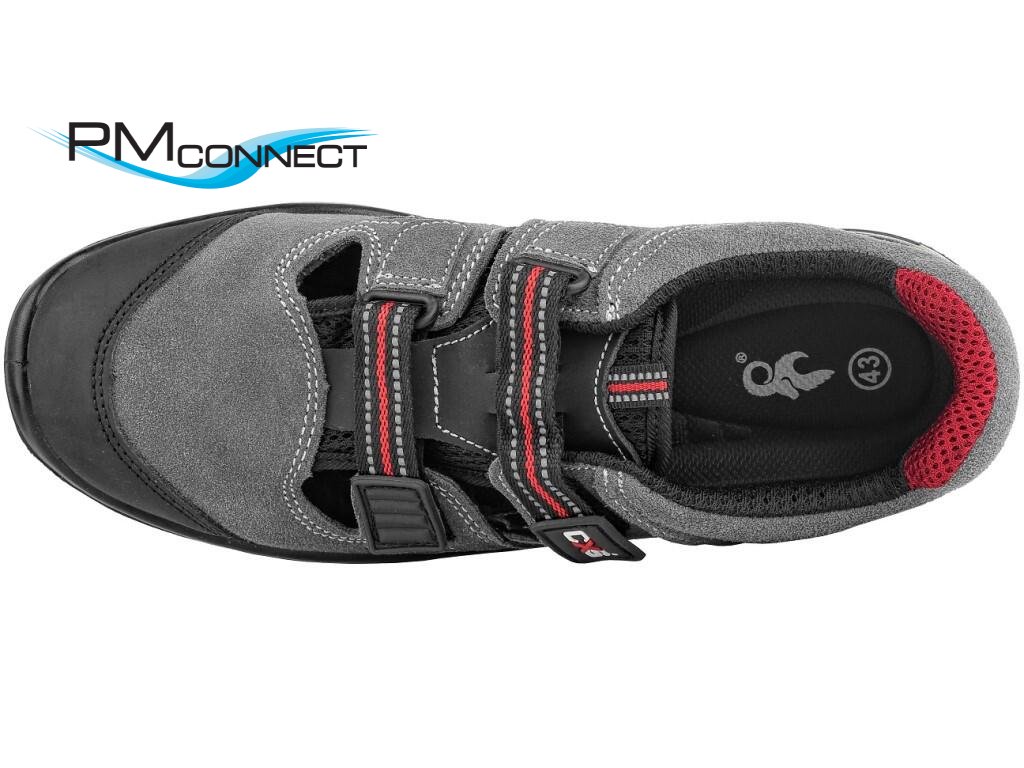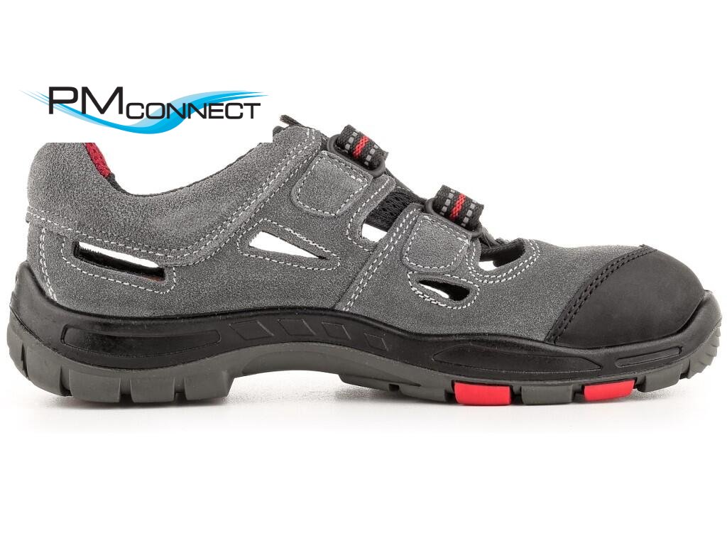 Pracovní sandál, kožený, perforovaný, zapínání na suchý zip s PVC reflexními pásky. Materiál: svršek z 1,6 - 1,8 mm kvalitní hovězí broušené kůže, bez kovových součástí, podšívka z prodyšné a oděru odolné textilie, podešev: PU-guma, protiskluzová, antistatická, olejivzdorná, odolná proti kontaktnímu teplu do 300 °C.Doplňkové parametry