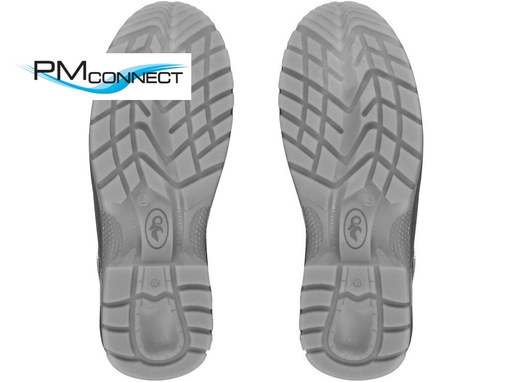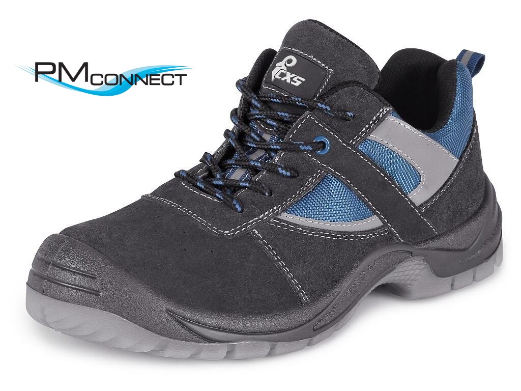 Pracovní polobotka, perforovaná, bez ocelové špice. Materiál: svršek z 1,4 - 1,6 mm kvalitní broušené kůže kombinovaný s prodyšnou tkaninou Cambridge, PU reflexní doplňky, prodyšná oděru odolná mesh podšívka, podešev: PU-TPU, protiskluzová, antistatická, olejivzdorná.Doplňkové parametry
