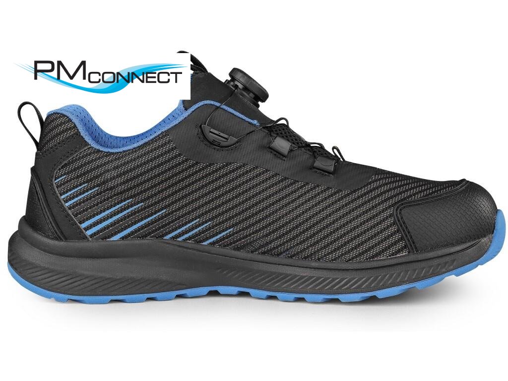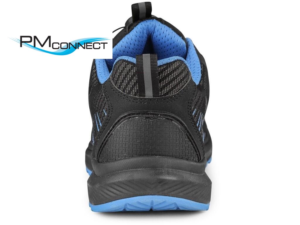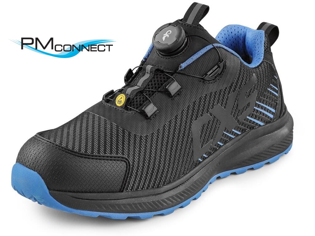 Pracovní ESD polobotka s prodyšným svrškem a reflexními doplňky. Speciální utahovací systém umožňuje rychlé stažení i uvolnění obuvi. Materiál: perforovaný textilní svršek z polyesteru, vnější ochrana okopu ze strukturovaného TPU, textilní podšívka, pohodlná anatomická vložka, podešev: EVA/guma, protiskluzová, olejivzdorná, antistatická a odolná kontaktnímu teplu do 300 °C. Vhodné pro práci v interiéru a suchých provozech.