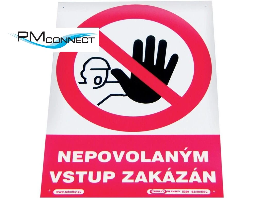 Tabulka "Nepovolaným vstup zakázán". Bezpečnostní, plastová, tloušťka 0,5 mm, znak + text v českém jazyce.Doplňkové parametry