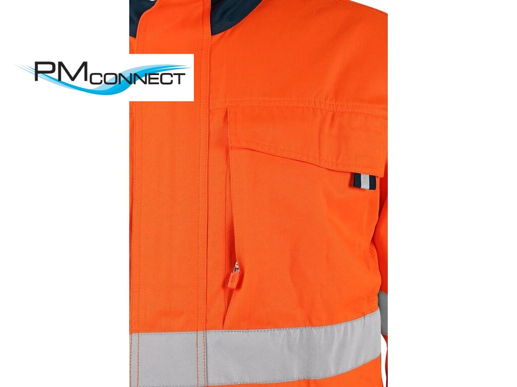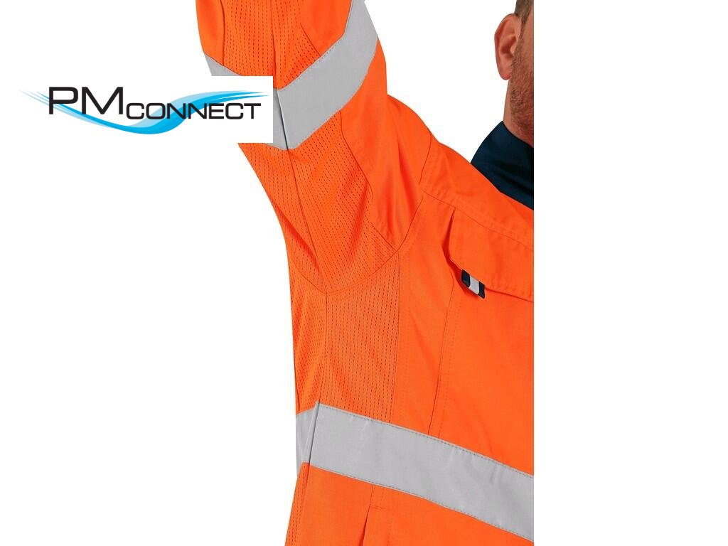 Pánská výstražná blůza, letní, rukávy s nastavitelnou manžetou na suchý zip, levá náprsní kapsa na suchý zip se skrytou kapsou na zip, pravá náprsní kapsa na suchý zip, kryté zapínání na zip a druky, v podpaží a na zádech mesh materiál zajišťující lepší odvětrávání, regulace v pase na suchý zip, reflexní pásky (šíře 5 cm). V kombinaci s kalhotami nebo kalhotami s náprsenkou Halifax splňuje ochrannou kategorii 3 (norma EN ISO 20471). Doporučené použití: letní pracovní oděv, stavebnictví, silničáři, řidiči, údržba, logistika, letecká a lodní doprava, popeláři, záchranáři.Doplňkové parametry