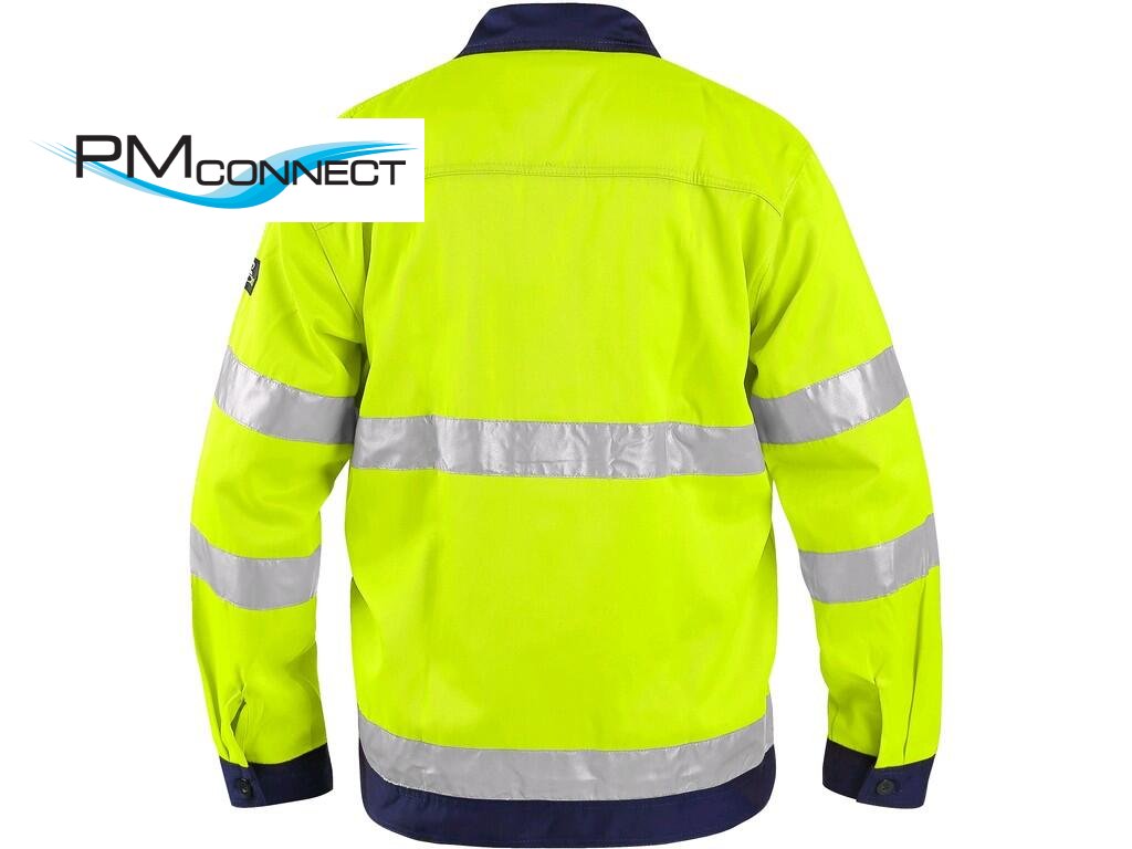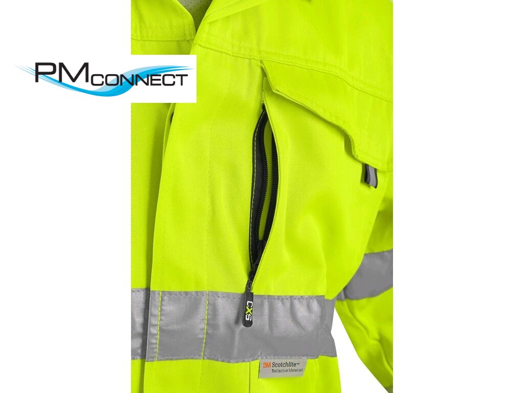 Pánská výstražná blůza, knoflík na přitáhnutí rukávové manžety, levá náprsní kapsa na suchý zip se skrytou kapsou na zip, pravá náprsní kapsa na suchý zip s menší kapsou na tužku, kryté zapínání na knoflíky, 3M reflexní pásky (šíře 5 cm). Doporučené použití: stavebnictví, silničáři, řidiči, údržba, logistika, letecká a lodní doprava, popeláři, záchranáři.Doplňkové parametry