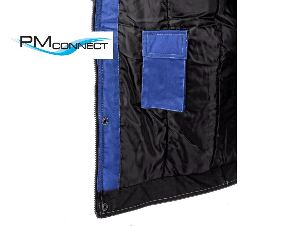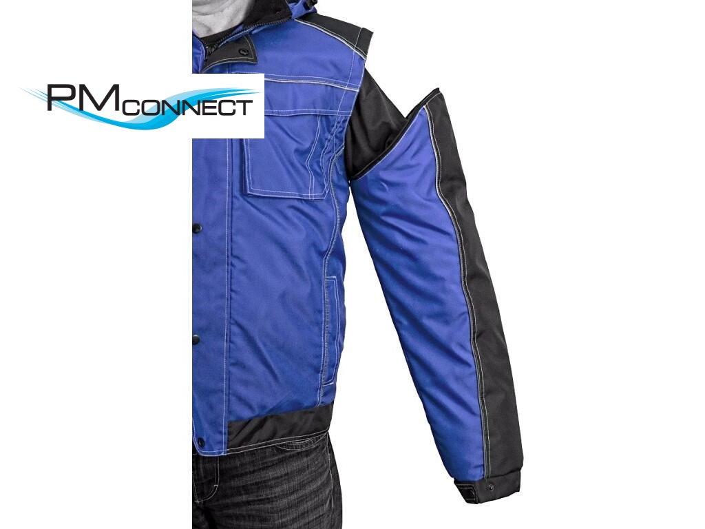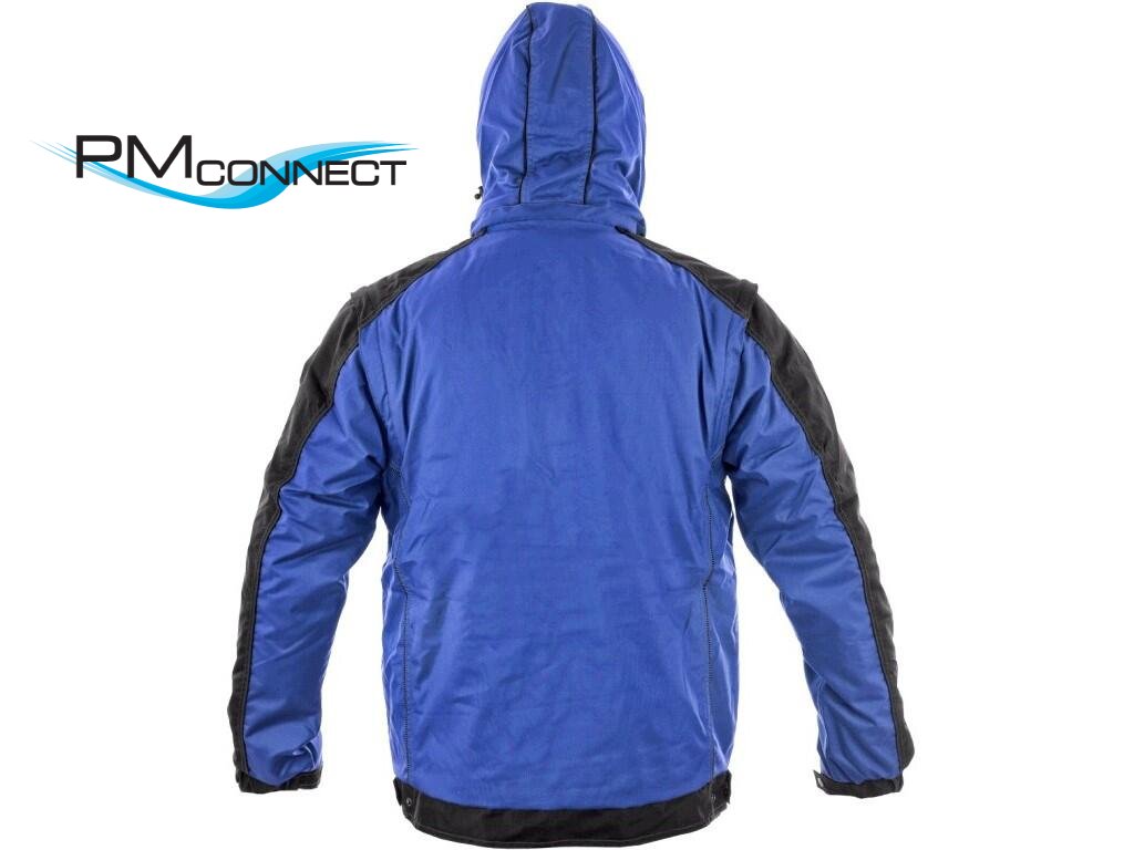 Pánská zateplená bunda 2 v 1, zapínaní na zip krytý légou, odepínací kapuce, fleecový límec, odepínací rukávy, regulovatelné manžety na rukávech, plastové poutko pod pravou náprsní kapsou, stahování v dolním okraji, lepené švy, reflexní doplňky. Kapsy: 4 náprsní kapsy (2 na zip), 2 spodní kapsy na zip, 2 vnitřní kapsy.
