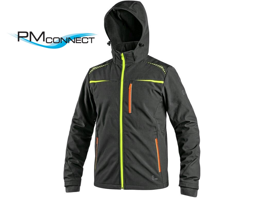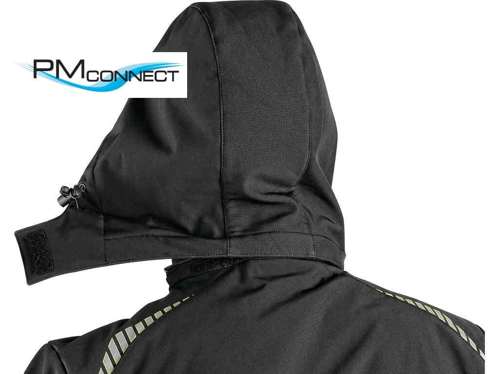 Pánská softshellová bunda s odepínací kapucí, odolná proti vodě a větru, zapínaní na zip, větrání v podpaží, náprsní kapsa na zip, boční kapsy na zip, vnitřní manžety v rukávech, stahování v dolním okraji, reflexní doplňky, TPU membrána. Odolnost materiálu proti průniku vody 8 000 mm mimo oblast švů, paropropustnost 3 000 g/m2/24h.Doplňkové parametry