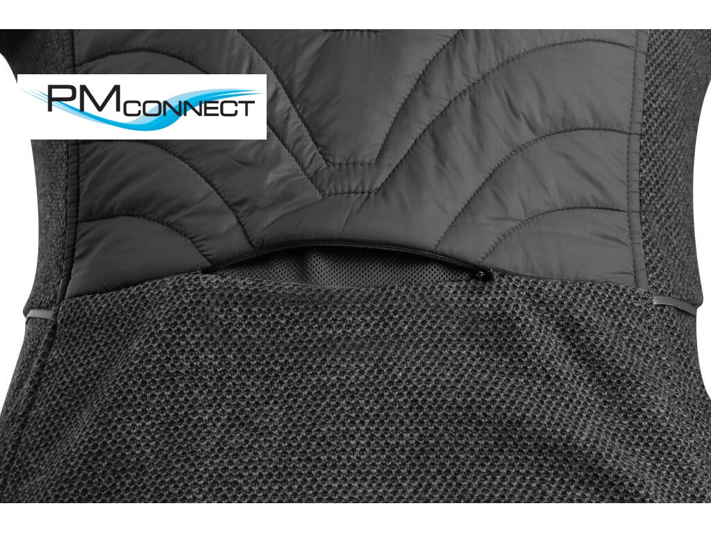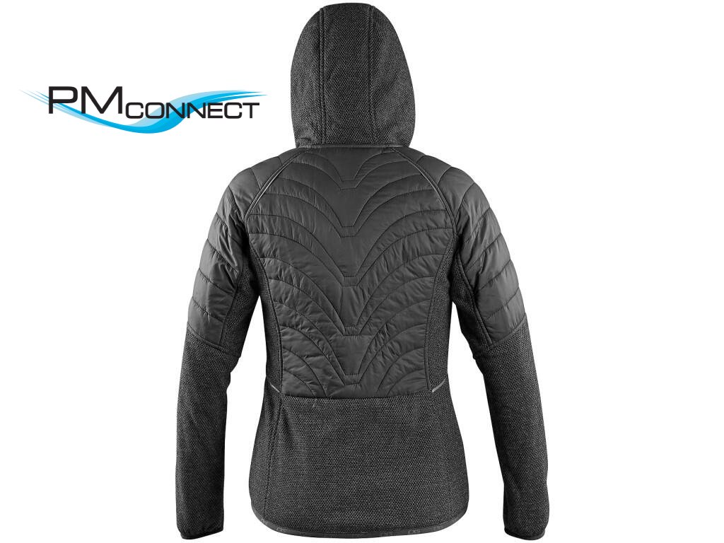 Dámská vycházková bunda z kombinovaných materiálů. Prošívaná část je lehce zateplená, zatímco kapuce, boky a rukávy jsou z příjemné pleteniny. Bunda má 2 boční kapsy na zip, zipovou ventilaci na zádech a reflexní doplňky. Pas a rukávy jsou ukončeny pružnou gumičkou.