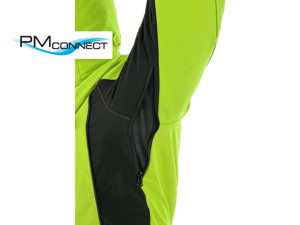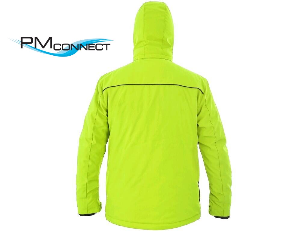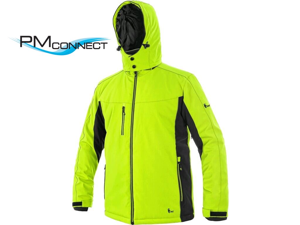 Pánská zateplená softshellová bunda, odolná proti vodě a větru, větrání v podpaží, odepínací kapuce, regulovatelná manžeta na rukávech a pružná manžeta v rukávech, stahování v dolním okraji, černé reflexní výpustky, TPU membrána, odolnost materiálu proti průniku vody 10 000 mm mimo oblast švů, paropropustnost 3 000 g/m2/24 h, podšívka je kombinací materiálů s fleecem, na levém spodním rukávu kapsička na zip, 2 spodní kapsy na zip, vnitřní kapsa.Doplňkové parametry