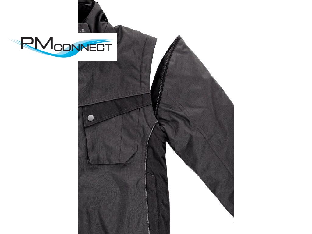 Dámská zateplená bunda 2 v 1, zapínaní na zip krytý légou, odepínací kapuce, fleecový límec, odepínací rukávy, rukávy a dolní okraj bundy ukončeny pružnou manžetou, plastové poutko pod pravou náprsní kapsou, lepené švy, reflexní doplňky. Kapsy: 2 náprsní kapsy, 2 boční kapsy na zip, 1 vnitřní kapsa.Doplňkové parametry