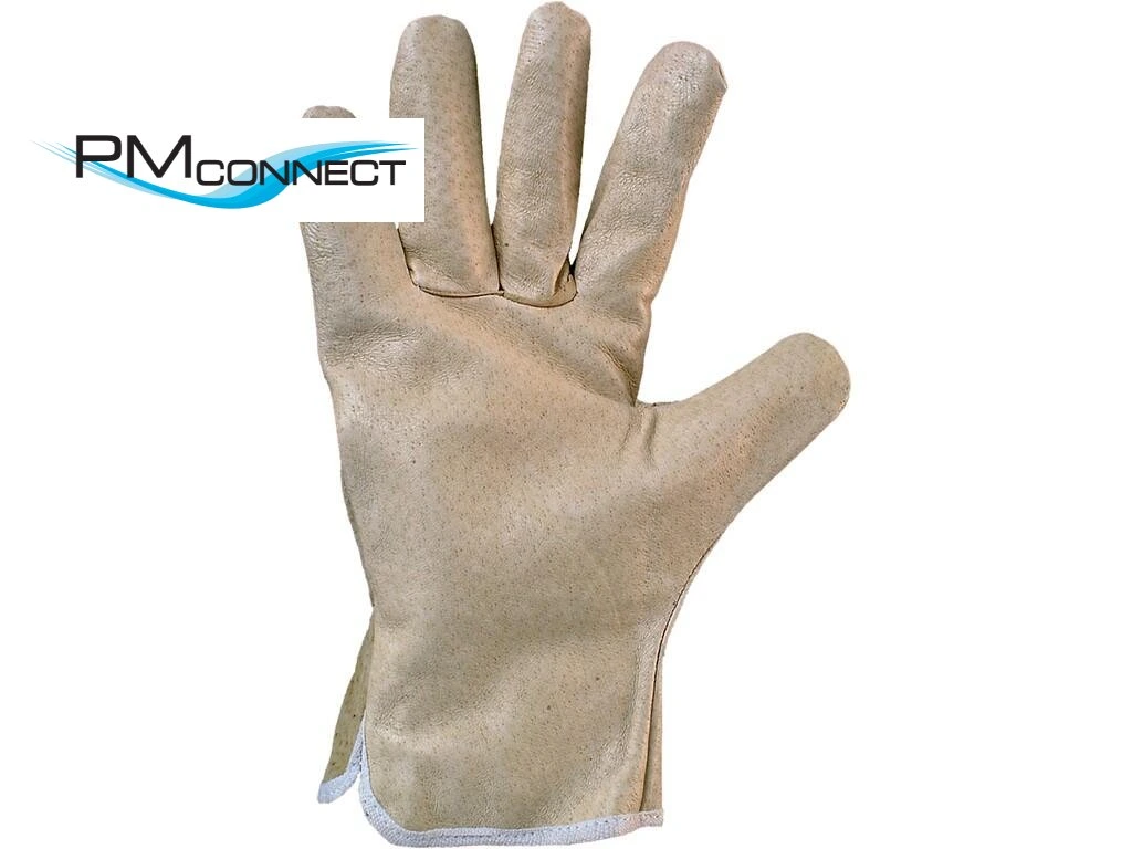 Kožené rukavice s gumičkou na zápěstí. Doporučené aplikace: logistika, lehký průmysl, hobby, stavebnictví, řidiči.Doplňkové parametry