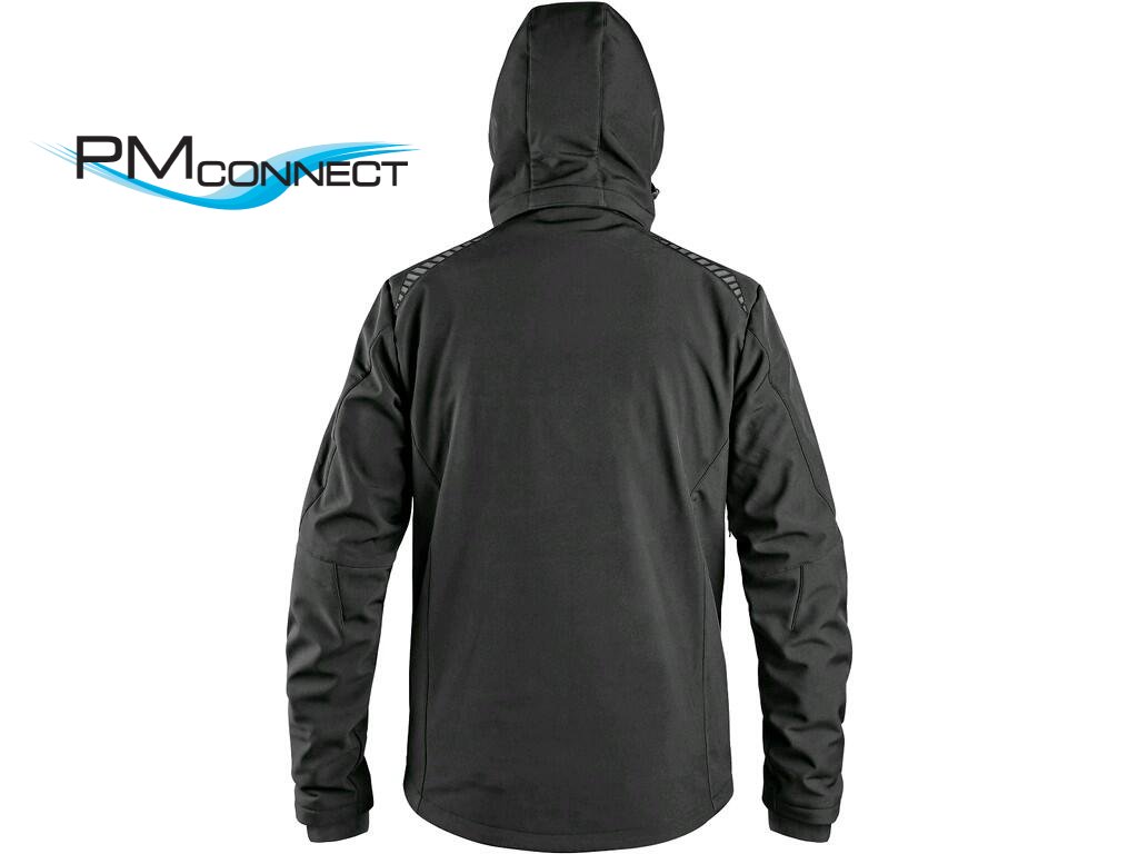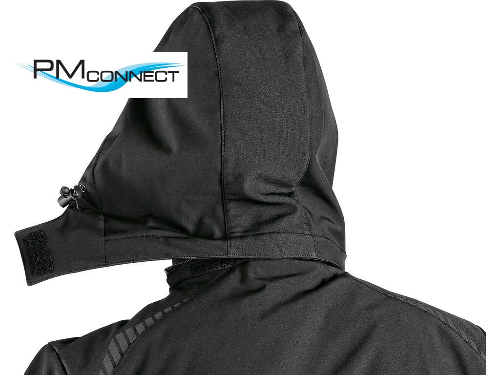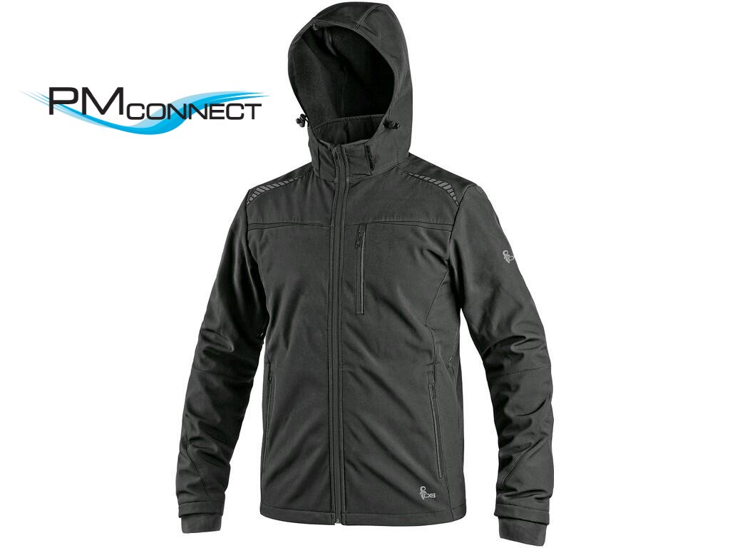 Pánská softshellová bunda s odepínací kapucí, odolná proti vodě a větru, zapínaní na zip, větrání v podpaží, náprsní kapsa na zip, boční kapsy na zip, vnitřní manžety v rukávech, stahování v dolním okraji, reflexní doplňky, TPU membrána. Odolnost materiálu proti průniku vody 8 000 mm mimo oblast švů, paropropustnost 3 000 g/m2/24h.Doplňkové parametry