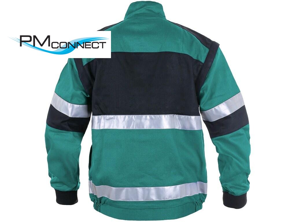 Pánská montérková blůza, odepínací rukávy s pružnou manžetou, kryté zapínání na zip a suché zipy, náprsní kapsy s klopami, skrytá náprsní kapsa na zip, jednoduché boční kapsy, spodní část na bocích do gumy, reflexní pruhy. Doporučené použití: strojírenství, stavebnictví, lehký průmysl, automobilový průmysl, logistika, skladová manipulace, spedice, autoservisy, údržba, montáže, zemědělství, zahrada, hobby.Doplňkové parametry