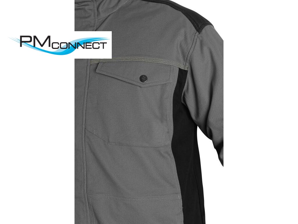 Pánská montérková blůza, strečová tkanina umožňující volný pohyb, ramena vyztužena 600D polyesterem, rukávy s nastavitelnou manžetou, kapsička s klopou na levém rukávu, kryté zapínání na zip a druky, náprsní kapsy - na druk a zip, boční kapsy na zip, regulovatelný pas, větrání na zádech, reflexní doplňky. Doporučené použití: strojírenství, stavebnictví, lehký průmysl, automobilový průmysl, logistika, skladová manipulace, spedice, autoservisy, údržba, montáže, zemědělství, zahrada, hobby.Doplňkové parametry