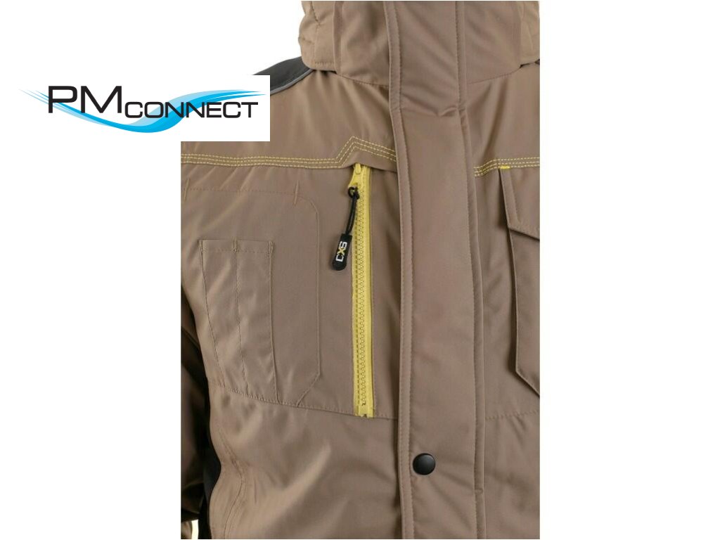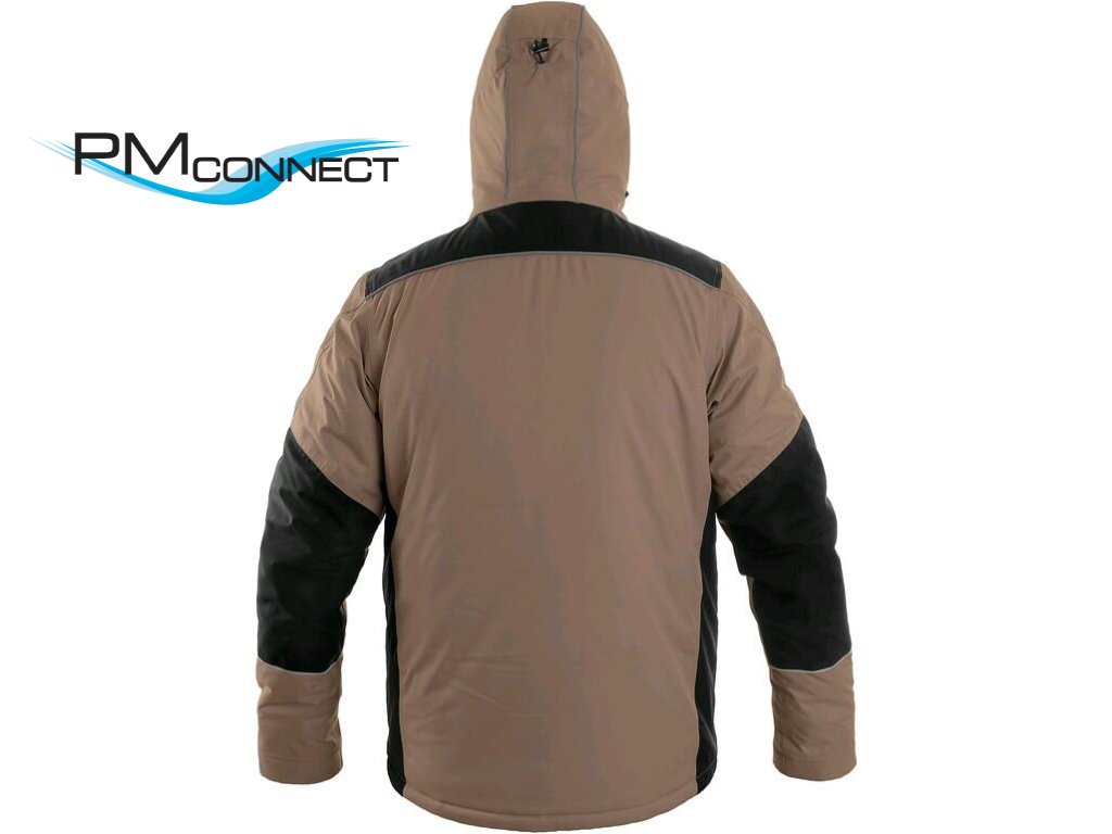 Pánská zateplená bunda, odolná proti vodě a větru, kryté zapínání na zip, odepínací kapuce, vnitřní manžety v rukávech, plastové poutko pod náprsní kapsou, stahování v dolním okraji, lepené švy, TPU membrána, reflexní doplňky. Náprsní kapsy na zip nebo druky, 2 boční kapsy na zip, 3 vnitřní kapsy.Doplňkové parametry