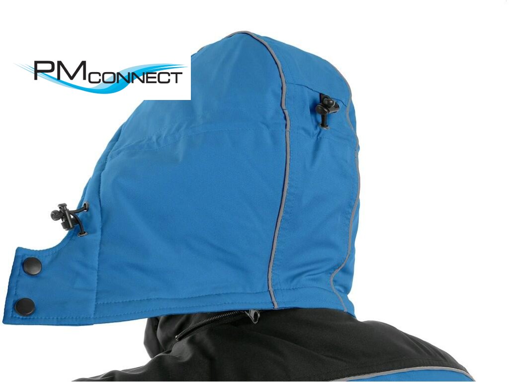 Pánská zateplená bunda, odolná proti vodě a větru, kryté zapínání na zip, odepínací kapuce, vnitřní manžety v rukávech, plastové poutko pod náprsní kapsou, stahování v dolním okraji, lepené švy, TPU membrána, reflexní doplňky. Náprsní kapsy na zip nebo druky, 2 boční kapsy na zip, 3 vnitřní kapsy.Doplňkové parametry