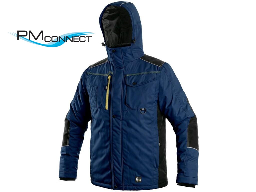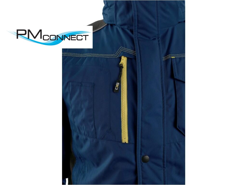 Pánská zateplená bunda, odolná proti vodě a větru, kryté zapínání na zip, odepínací kapuce, vnitřní manžety v rukávech, plastové poutko pod náprsní kapsou, stahování v dolním okraji, lepené švy, TPU membrána, reflexní doplňky. Náprsní kapsy na zip nebo druky, 2 boční kapsy na zip, 3 vnitřní kapsy.Doplňkové parametry