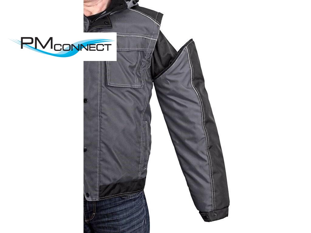 Pánská zateplená bunda 2 v 1, zapínaní na zip krytý légou, odepínací kapuce, fleecový límec, odepínací rukávy, regulovatelné manžety na rukávech, plastové poutko pod pravou náprsní kapsou, stahování v dolním okraji, lepené švy, reflexní doplňky. Kapsy: 4 náprsní kapsy (2 na zip), 2 spodní kapsy na zip, 2 vnitřní kapsy.