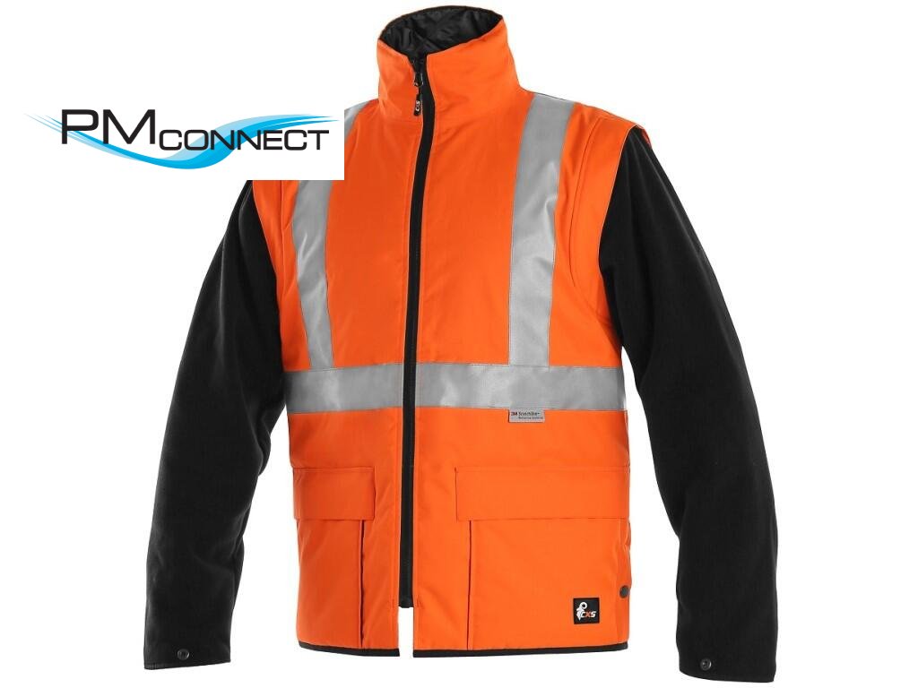 Pánská výstražná bunda 5 v 1 s odnímatelnou vnitřní bundou, odolná proti vodě a větru, 3M reflexní pruhy, lepené švy. Vnější bunda: 2 spodní kapsy s patkou, 2 náprsní kapsy, zip krytý légou zapínanou na druky, kapuce v límci, regulovatelné manžety na suchý zip. Možnost regulace velikosti v pase i v dolní části bundy. Vnitřní kapsy: na pravé straně kapsa na mobil, na levé straně větší kapsa na peněženku. Vnitřní bunda s odepínacími fleecovými rukávy, 2 boční kapsy kryté patkou na suchý zip, vnitřní kapsa na levé straně. Doporučené použití: stavebnictví, silničáři, řidiči, logistika, údržba, policie, záchranáři.Doplňkové parametry