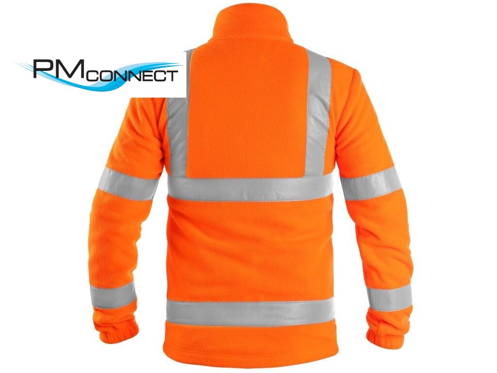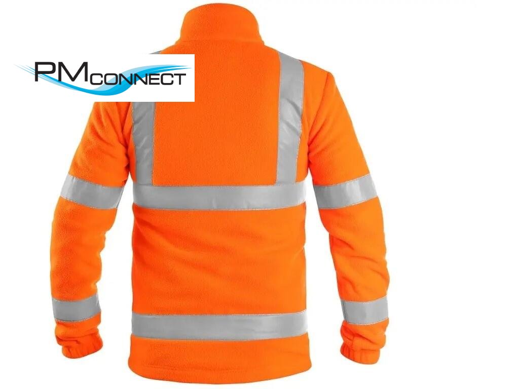 Pánská výstražná fleecová bunda s reflexními pruhy. Rukávy do gumy, boční i náprsní kapsy na zip, stahování v dolním okraji, podšívka ze síťoviny. Doporučené použití: stavebnictví, silničáři, řidiči, letecká a lodní doprava, logistika, řidiči kamionů, policie, záchranáři.Doplňkové parametry