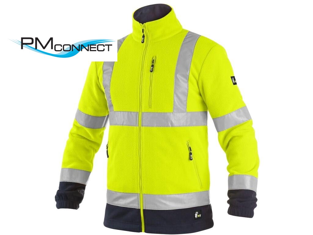 Pánská výstražná fleecová bunda s reflexními pruhy. Rukávy do gumy, boční i náprsní kapsy na zip, stahování v dolním okraji, podšívka ze síťoviny. Doporučené použití: stavebnictví, silničáři, řidiči, letecká a lodní doprava, logistika, řidiči kamionů, policie, záchranáři.Doplňkové parametry