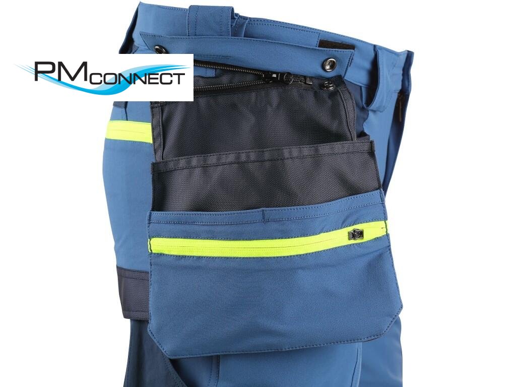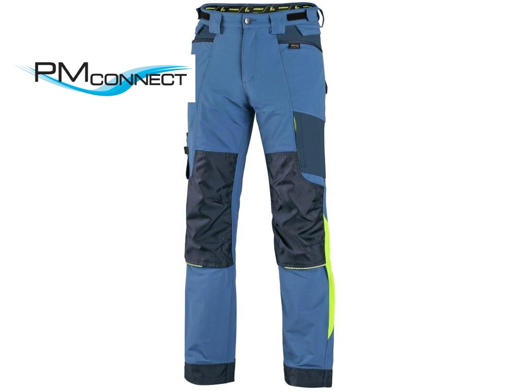 Pánské montérkové kalhoty s užším moderním střihem nohavic s kontrastními barevnými a reflexními doplňky. Konstrukce 4-way stretch umožňuje roztahování materiálu ve všech čtyřech směrech a tím i snadný a volný pohyb. Vysoké procento nylonu zaručuje schopnost rychlého schnutí. Vybavení kalhot: flexibilní pas s možností upravení velikosti a poutky na opasek, 2 přední kapsy, 2 odnímatelné kapsy na nářadí vyztuženy materiálem CORDURA®, zipová kapsa na stehně s odnímatelným pouzdrem na ID kartu, multifunkční boční kapsa, 2 zadní kapsy ve spodní části vyztuženy materiálem CORDURA®, zipová ventilace v zadní části stehen, kolena zesílena materiálem CORDURA® s možností vložení kolenních výztuh, spodní část nohavic vyztužena materiálem CORDURA®. Kalhoty jsou vybaveny EASY-PROLONG systémem, který umožňuje snadné prodloužení střihu na vyšší postavu uvolněním švu na nohavicích. Doporučené použití: strojírenství, stavebnictví, lehký průmysl, automobilový průmysl, logistika, skladování, spedice, autoservisy, údržba, montáže, zemědělství, zahrada, hobby a volný čas.