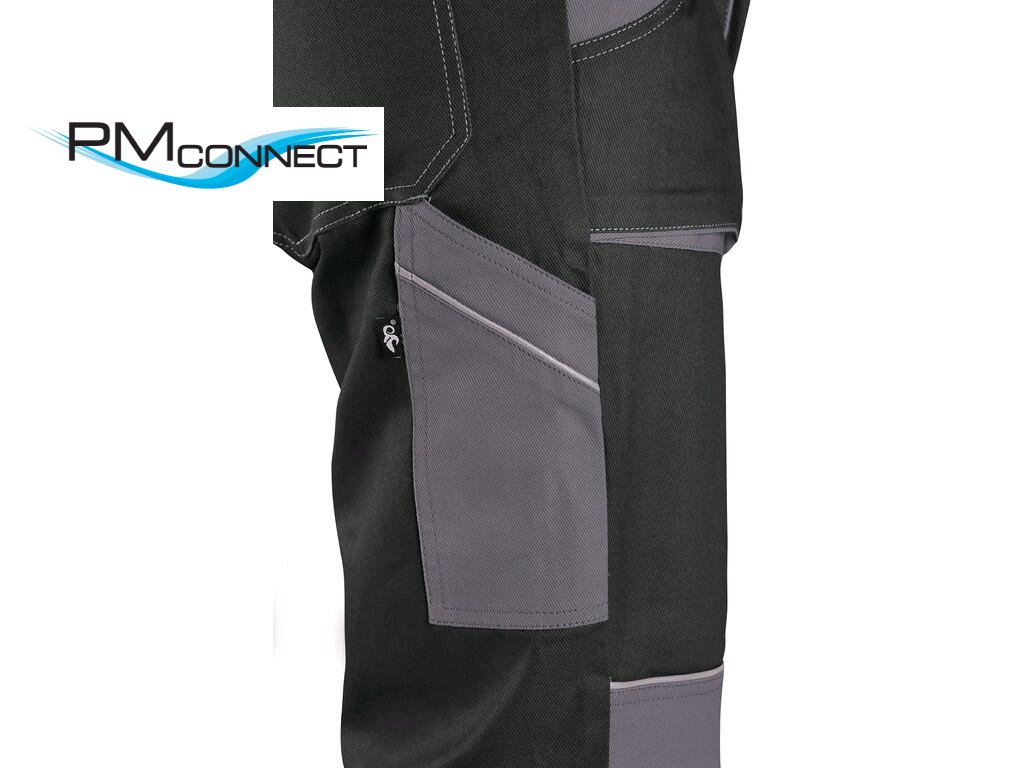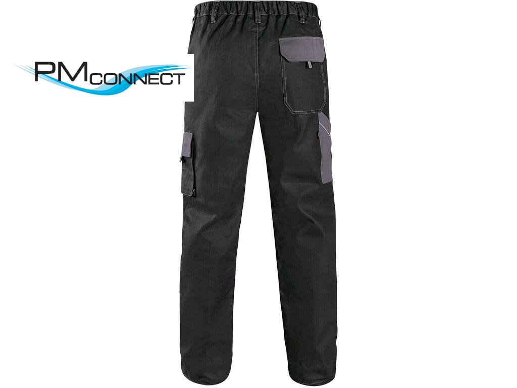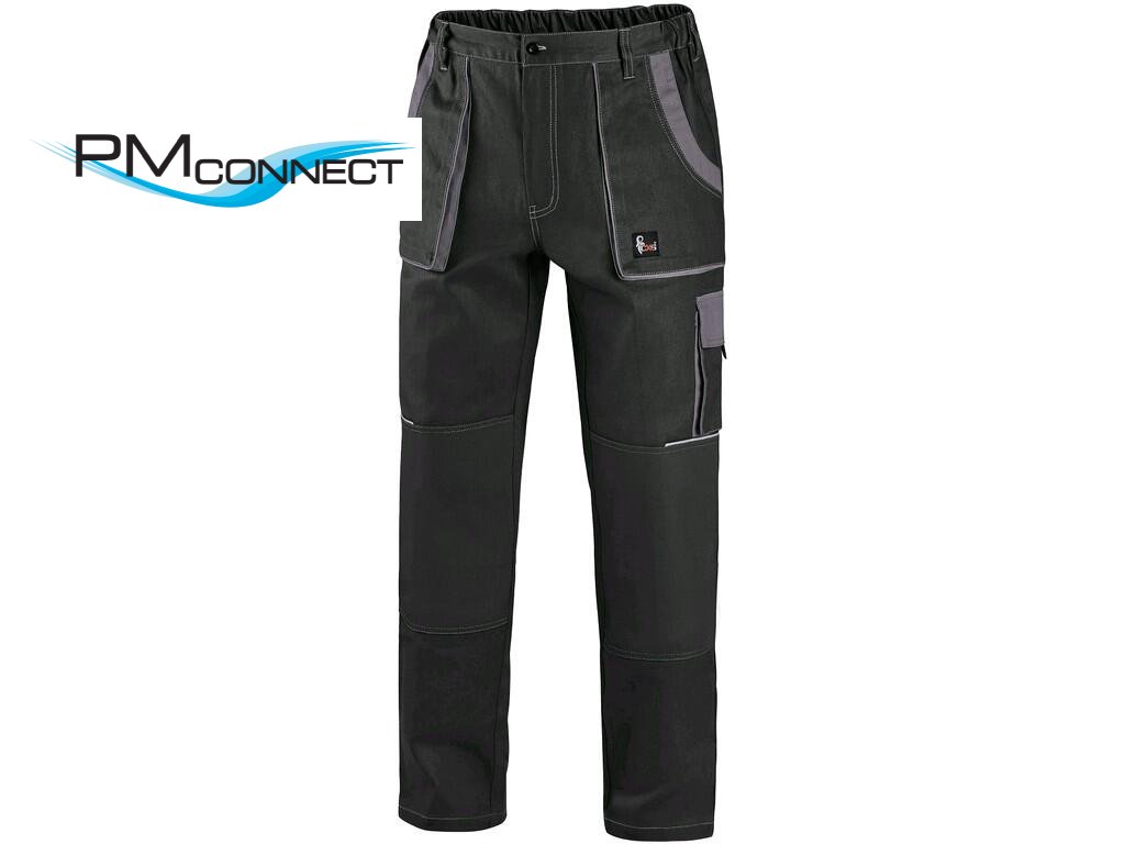 Pánské montérkové kalhoty, pas s poutky na opasek, vzadu do gumy, přední kapsy, boční kapsa na svinovací / skládací metr, boční kapsa na mobil / peněženku, zdvojená kolena, zadní kapsa s klopou, reflexní doplňky. Doporučené použití: stavebnictví, lehký průmysl, logistika, skladová manipulace, autoservisy, údržba, montáže, zemědělství, zahrada, hobby.Doplňkové parametry