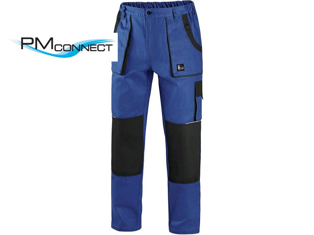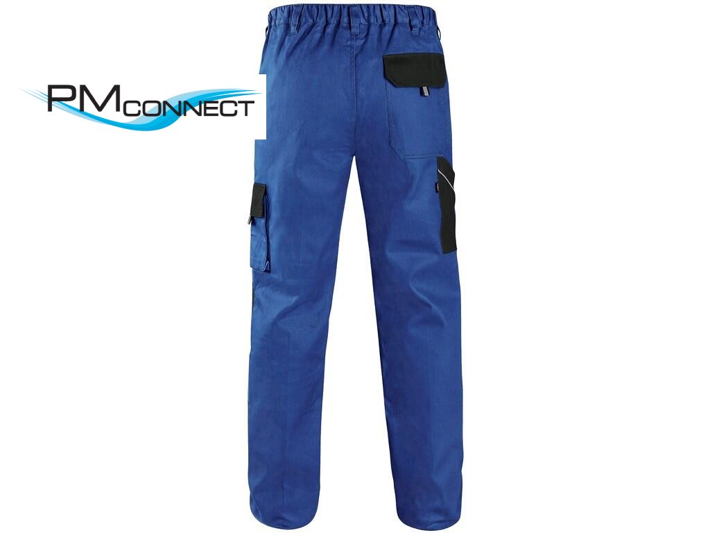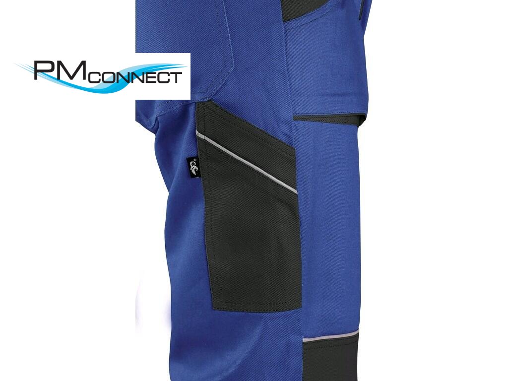 Pánské montérkové kalhoty, pas s poutky na opasek, vzadu do gumy, přední kapsy, boční kapsa na svinovací / skládací metr, boční kapsa na mobil / peněženku, zdvojená kolena, zadní kapsa s klopou, reflexní doplňky. Doporučené použití: stavebnictví, lehký průmysl, logistika, skladová manipulace, autoservisy, údržba, montáže, zemědělství, zahrada, hobby.Doplňkové parametry