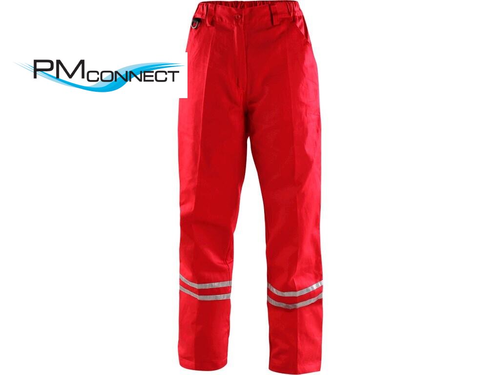 >Dámské pracovní kalhoty s reflexními pruhy. Pas s poutky na opasek, vzadu do gumy, zadní kapsy kryté klopou na suchý zip. Materiál: 100 % bavlna.Doplňkové parametry