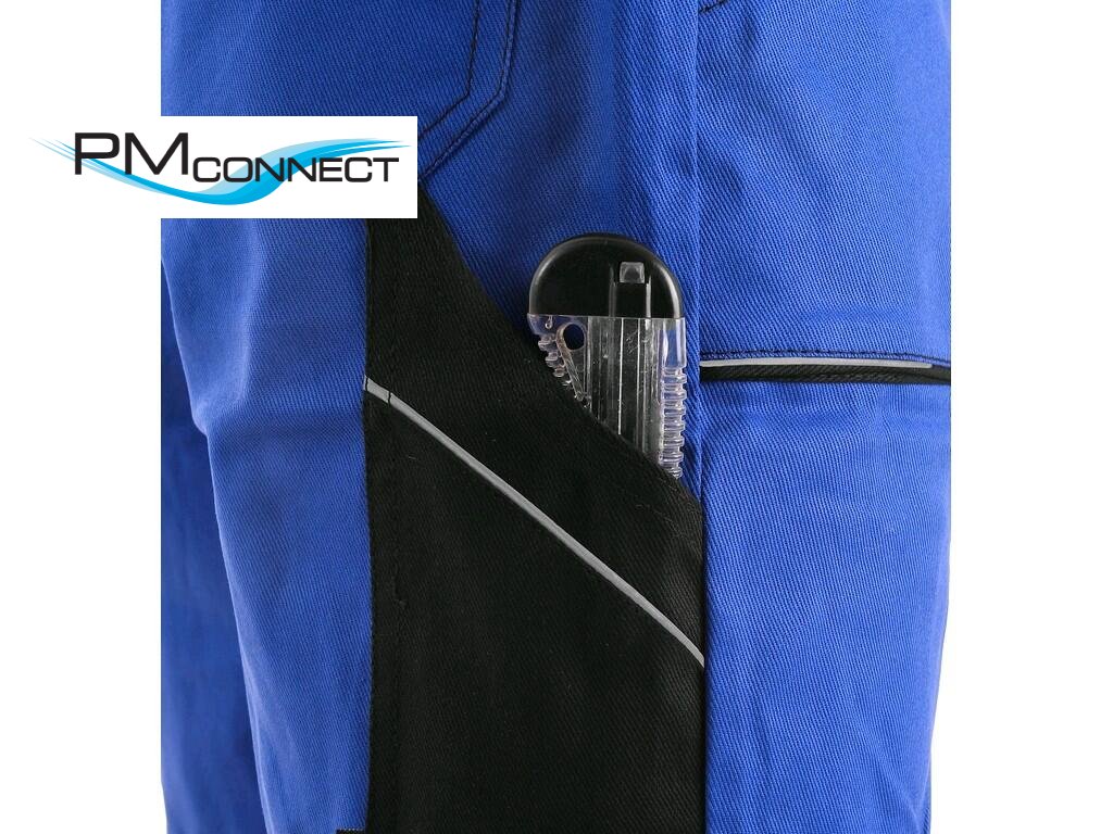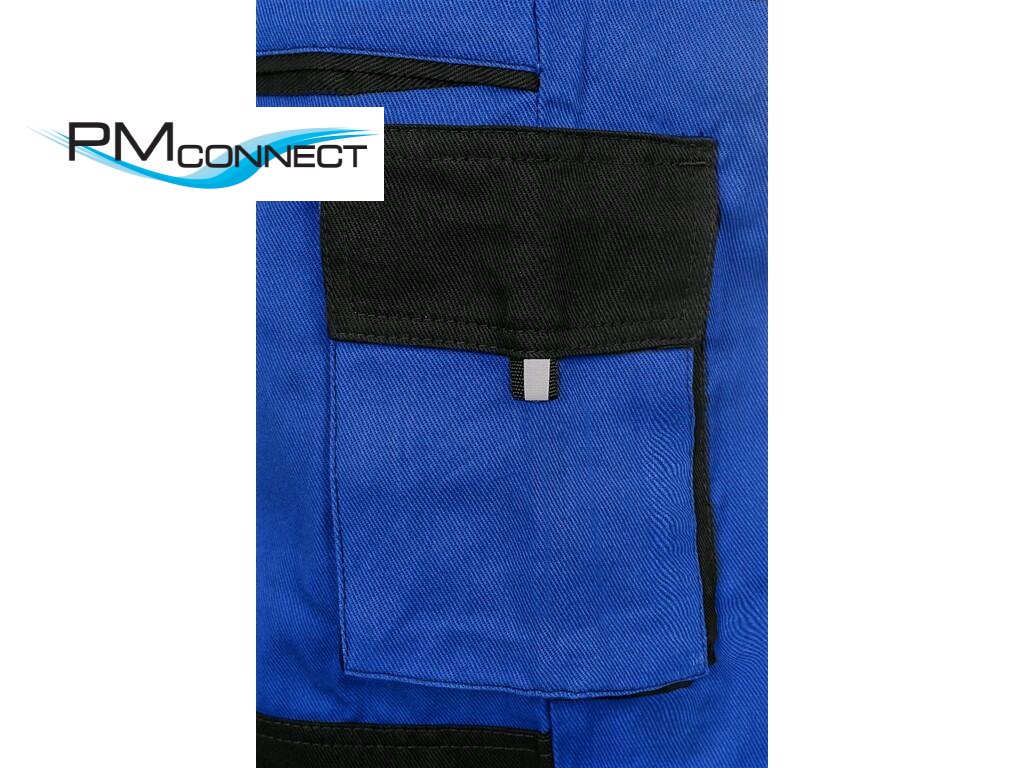 Pánské montérkové kalhoty - zkrácená varianta na výšku 170-176 cm. Pas s poutky na opasek, vzadu do gumy, přední kapsy, boční kapsa na svinovací / skládací metr, boční kapsa na mobil / peněženku, zdvojená kolena, zadní kapsa s klopou, reflexní doplňky. Doporučené použití: stavebnictví, lehký průmysl, logistika, skladová manipulace, autoservisy, údržba, montáže, zemědělství, zahrada, hobby.Doplňkové parametry