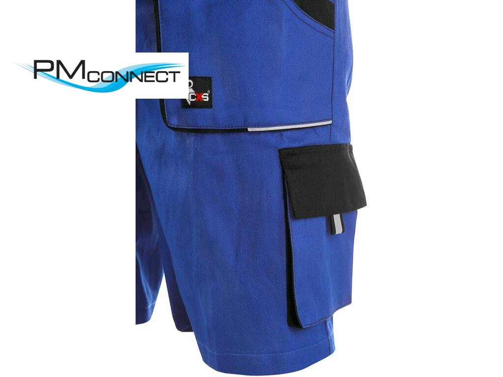 Pánské montérkové kraťasy, pas s poutky na opasek, vzadu do gumy, přední kapsy, boční kapsa na svinovací / skládací metr, boční kapsa na mobil / peněženku, zadní kapsa s klopou, reflexní doplňky. Doporučené použití: letní pracovní oděv, stavebnictví, lehký průmysl, logistika, skladová manipulace, autoservisy, údržba, montáže, zemědělství, zahrada, hobby.Doplňkové parametry