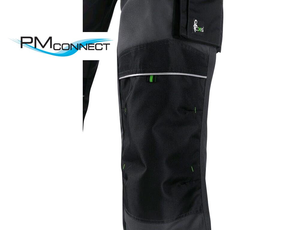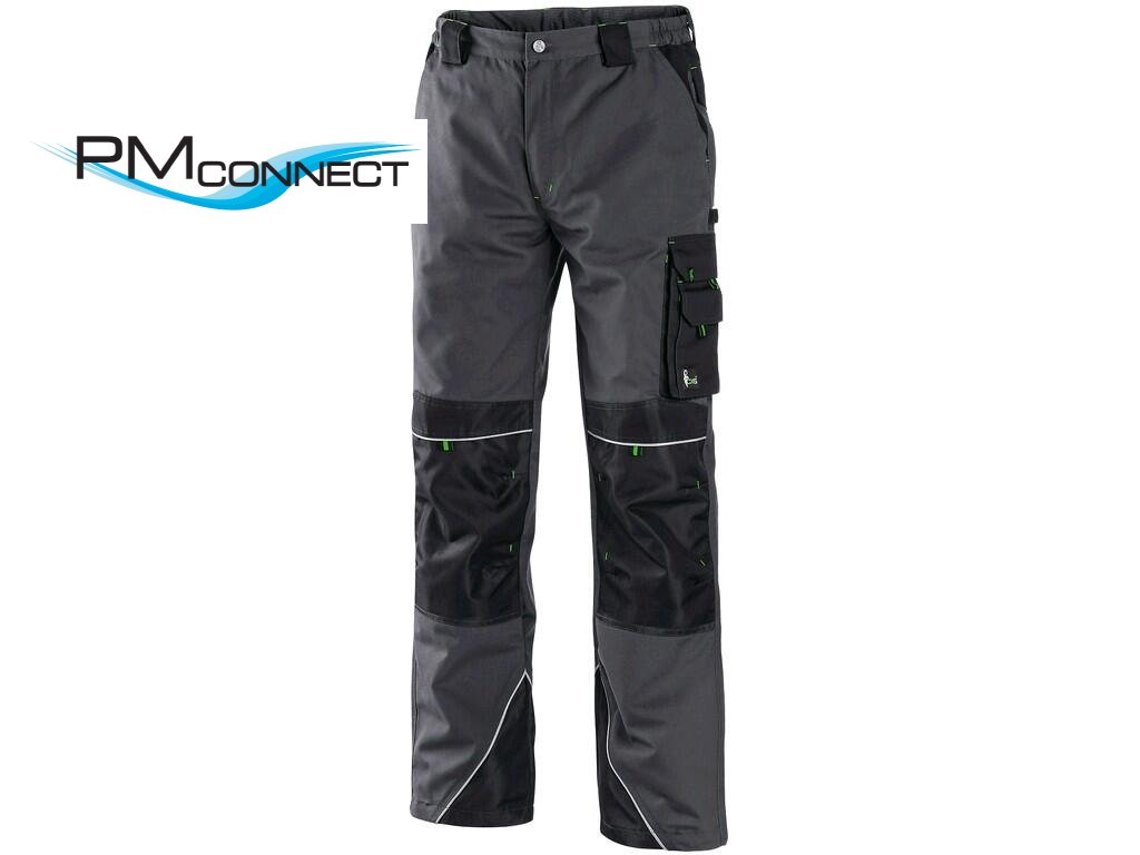 Pánské montérkové kalhoty, pas s poutky na opasek a gumou v bocích, přední klínové kapsy, multifunkční kapsy na obou stranách, kolena zesílena materiálem 600D polyesterem s možností vložení kolenních výztuh, dvě zadní kapsy s klopami, spodní část nohavic vyztužena materiálem 600D polyester, reflexní doplňky. Doporučené použití: stavebnictví, strojírenství, lehký průmysl, automobilový průmysl, logistika, skladová manipulace, spedice, autoservisy, údržba, montáže, zemědělství, zahrada, hobby.Doplňkové parametry