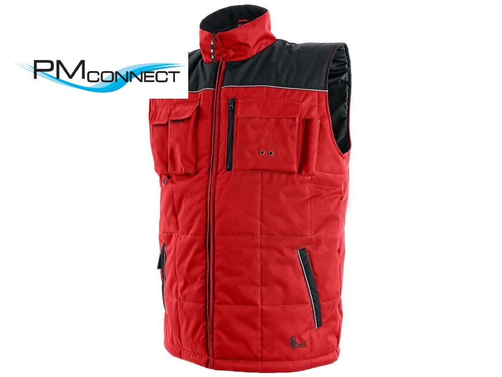 Pánská zateplená vesta, voděodolná s fleecovým límcem, reflexní výpustky, zapínání na zip, stahování v dolním okraji. Kapsy: spodní dvě kapsy s reflexními výpustky zapínané na zip, náprsní kapsy: na pravé straně dvě malé kapsy zavírané na patky se suchým zipem, na levé straně jedna kapsa na zip, druhá zavíraná na patku se suchým zipem a malým tunelem na tužku. Jedna vnitřní kapsa na pravé straně.Doplňkové parametry