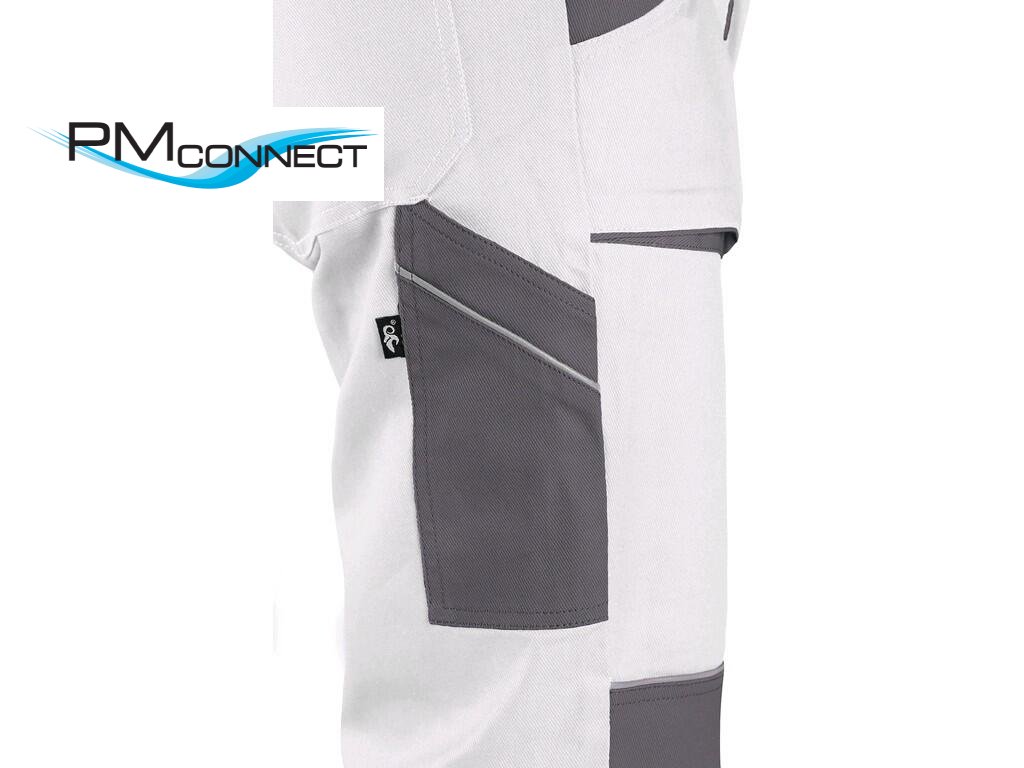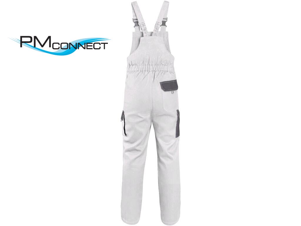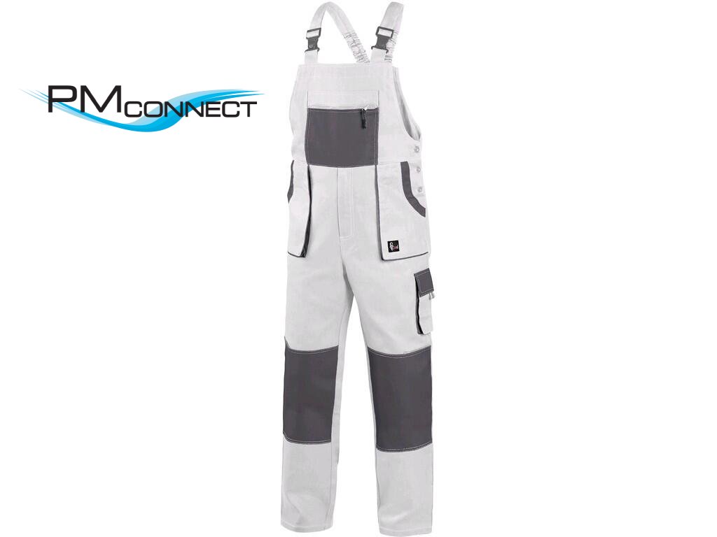 Pánské montérkové kalhoty s náprsenkou, náprsní kapsa na zip, pas vzadu do gumy, přední kapsy, boční kapsa na svinovací / skládací metr, boční kapsa na mobil / peněženku, zdvojená kolena, zadní kapsa s klopou, šle s gumou vzadu, reflexní doplňky. Doporučené použití: stavebnictví, lehký průmysl, logistika, skladová manipulace, autoservisy, údržba, montáže, zemědělství, zahrada, hobby.Doplňkové parametry
