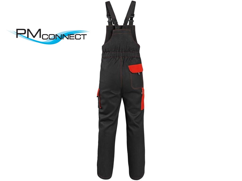 Pánské montérkové kalhoty s náprsenkou, náprsní kapsa na zip, pas vzadu do gumy, přední kapsy, boční kapsa na svinovací / skládací metr, boční kapsa na mobil / peněženku, zdvojená kolena, zadní kapsa s klopou, šle s gumou vzadu, reflexní doplňky. Doporučené použití: stavebnictví, lehký průmysl, logistika, skladová manipulace, autoservisy, údržba, montáže, zemědělství, zahrada, hobby.Doplňkové parametry