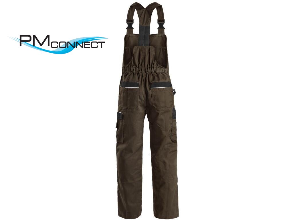Pánské montérkové kalhoty s náprsenkou, náprsní kapsy s klopami, pas s poutky na opasek, vzadu do gumy, přední kapsy s poutky na nářadí, multifunkční kapsy na obou stranách, kolena zesílena 600D polyesterem s možností vložení kolenních výztuh, dvě zadní kapsy, jedna na suchý zip, šle s gumou vzadu, reflexní doplňky. Doporučené použití: stavebnictví, strojírenství, lehký průmysl, automobilový průmysl, logistika, skladová manipulace, spedice, autoservisy, údržba, montáže, zemědělství, zahrada, hobby.Doplňkové parametry