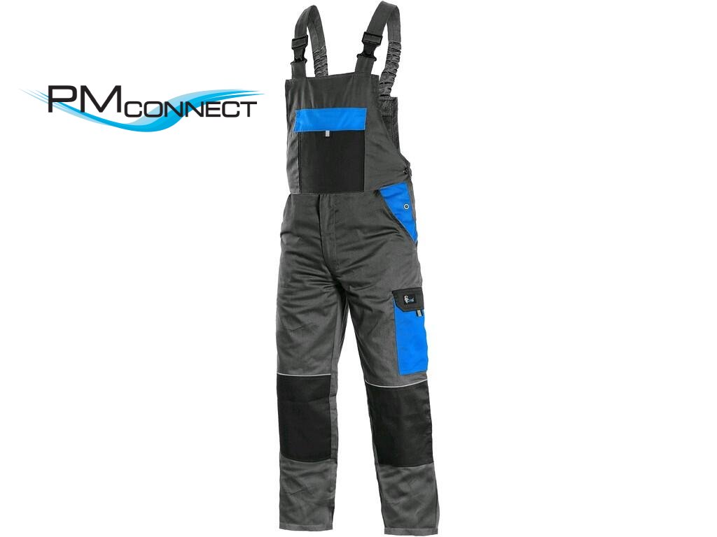 Pánské montérkové kalhoty s náprsenkou, z lehkého materiálu, náprsní kapsa s klopou, přední klínové kapsy, boční kapsa s klopou, kapsa na skládací/svinovací metr, zdvojená kolena, zadní jednoduchá kapsa, šle vzadu na gumu, reflexní doplňky. Díky odlehčené gramáži vhodné pro práci nejen v letním období, ale také celoročně ve vytápěných provozech. Doporučené použití: stavebnictví, strojírenství, lehký průmysl, automobilový průmysl, logistika, skladová manipulace, spedice, autoservisy, údržba, montáže, zemědělství, učiliště, zahrada, hobby.Doplňkové parametry
