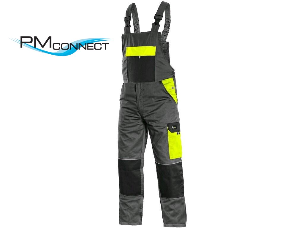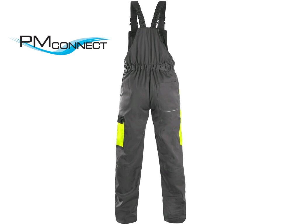 Pánské montérkové kalhoty s náprsenkou, z lehkého materiálu, náprsní kapsa s klopou, přední klínové kapsy, boční kapsa s klopou, kapsa na skládací/svinovací metr, zdvojená kolena, zadní jednoduchá kapsa, šle vzadu na gumu, reflexní doplňky. Díky odlehčené gramáži vhodné pro práci nejen v letním období, ale také celoročně ve vytápěných provozech. Doporučené použití: stavebnictví, strojírenství, lehký průmysl, automobilový průmysl, logistika, skladová manipulace, spedice, autoservisy, údržba, montáže, zemědělství, učiliště, zahrada, hobby.Doplňkové parametry