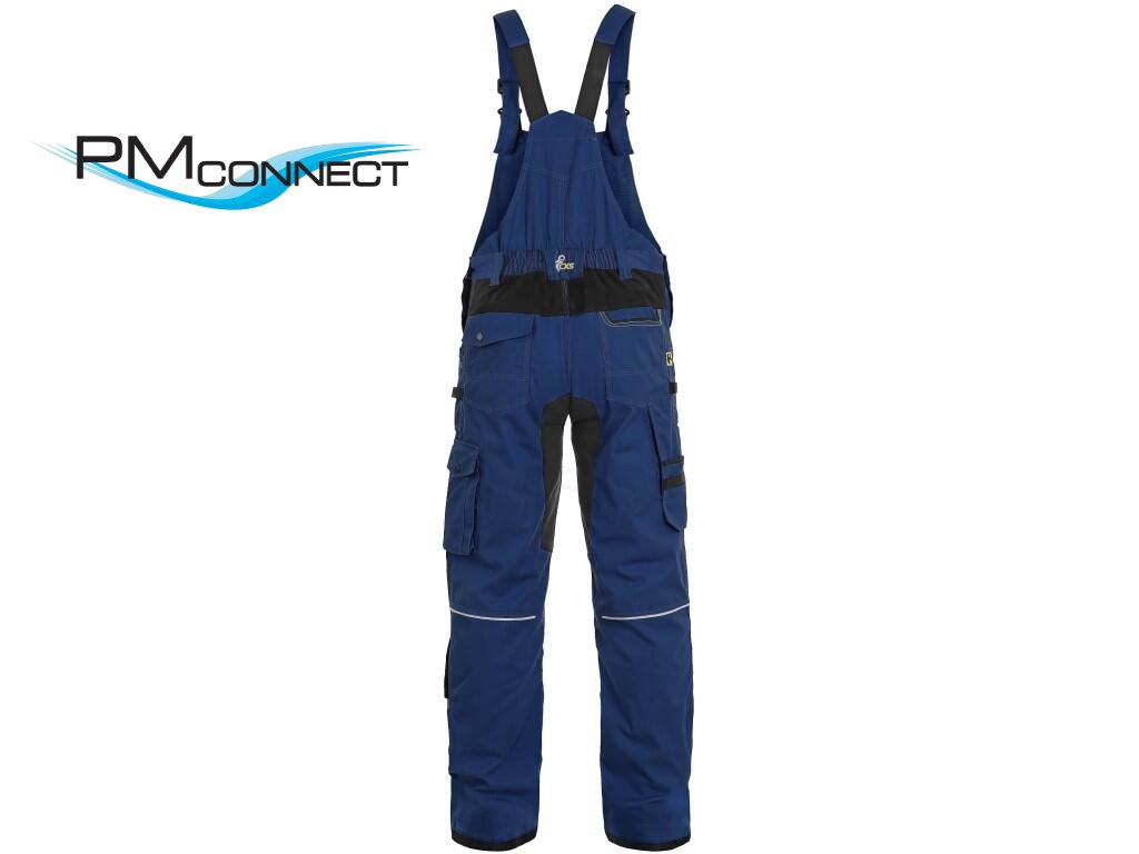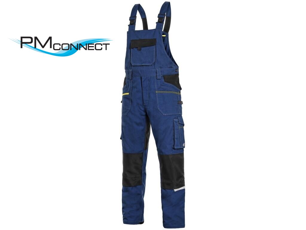 Pánské montérkové kalhoty s náprsenkou, strečová tkanina umožňující volný pohyb, náprsní kapsa s klopou, pas s poutky na opasek, přední kapsy s kapsou na zip, multifunkční kapsy na obou stranách, kolena zesílena 600D polyesterem s možností vložení kolenních výztuh, dvě zadní kapsy - jedna s klopou, zadní spodní lem nohavice vyztužen 600D polyesterem, šle s gumou vzadu, reflexní doplňky. Doporučené použití: strojírenství, stavebnictví, lehký průmysl, automobilový průmysl, logistika, skladová manipulace, spedice, autoservisy, údržba, montáže, zemědělství, zahrada, hobby. Kalhoty jsou vybaveny EASY-PROLONG systémem, který umožňuje snadné prodloužení střihu na vyšší postavu uvolněním švu na nohavicích.