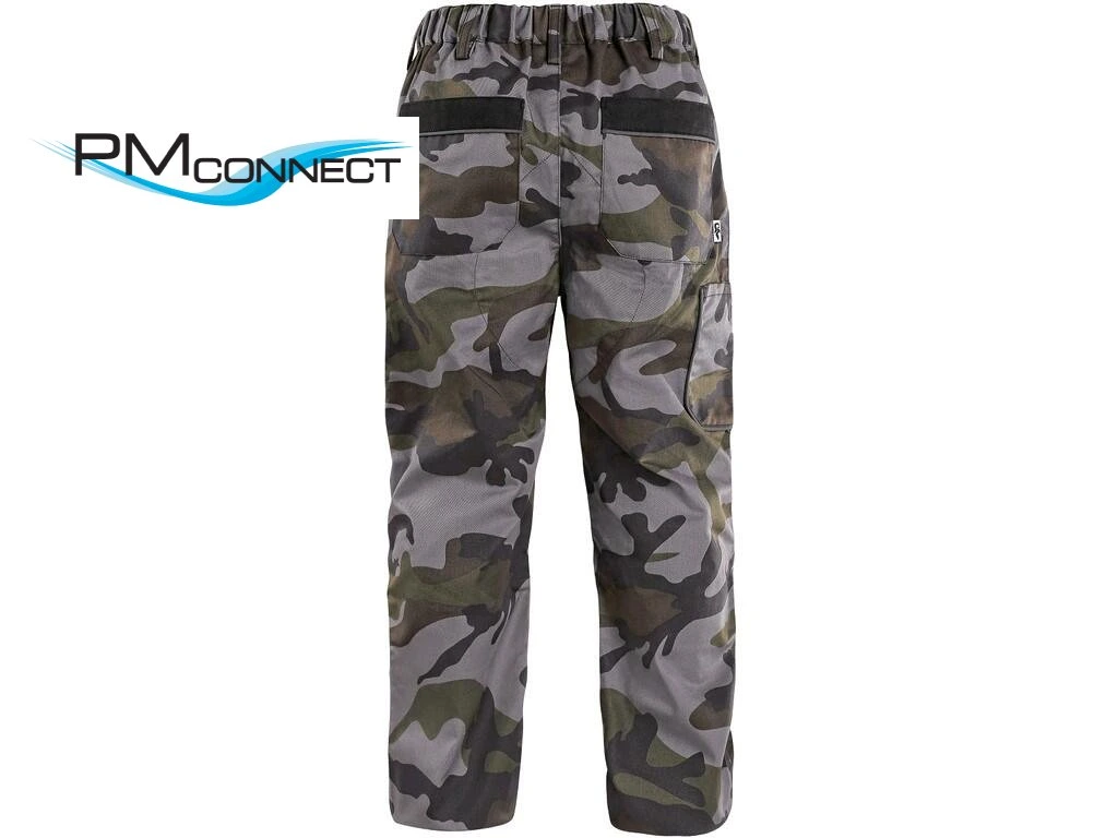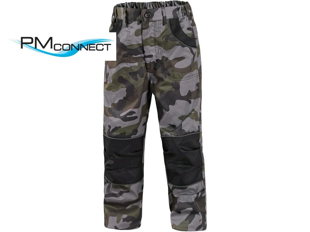 Dětské maskáčové kalhoty se zesílenými koleny a sedem pro delší životnost. Pas s poutky na opasek, vzadu do gumy, přední i zadní kapsy, boční kapsa, reflexní doplňky.Doplňkové parametry