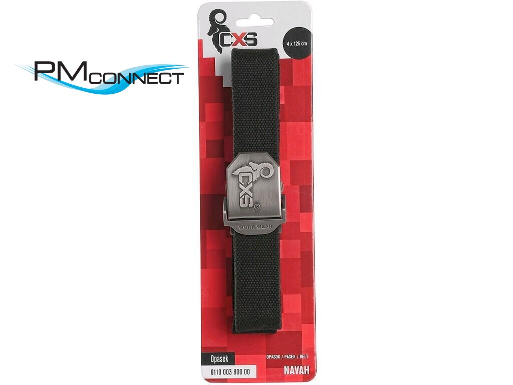 Textilní opasek s kvalitní kovovou sponou s logem CXS, jednoduché patentní zapínání, spona pro individuální nastavení délky. Součásti balení je praktický blistr pro prodejní stojany.Doplňkové parametry