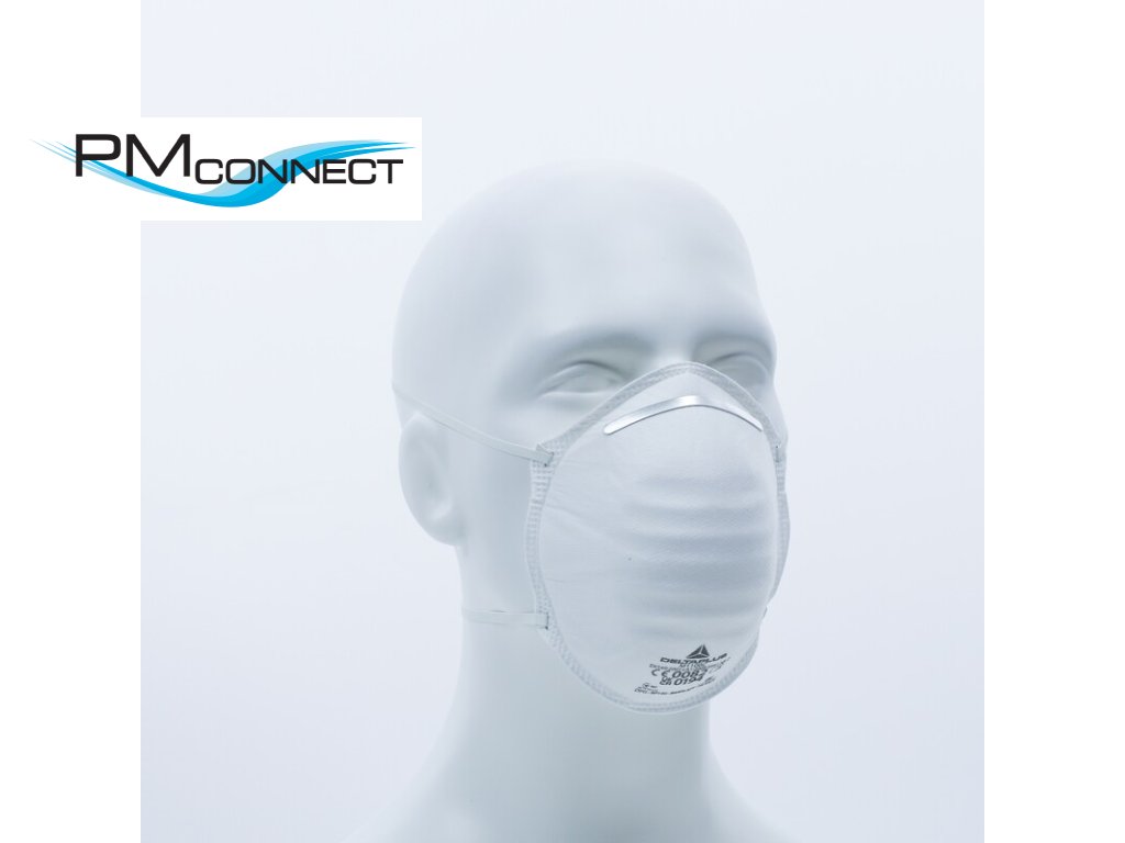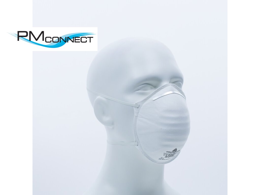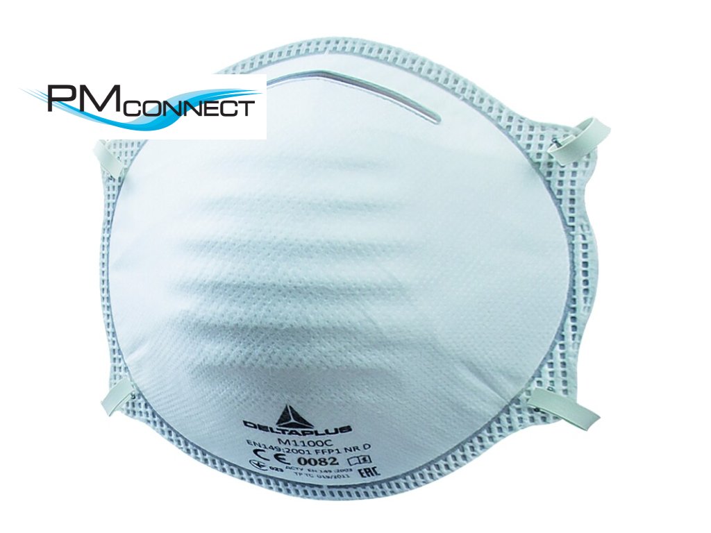 Jednorázová dýchací maska P1 bez ventiluMateriál : Syntetická netkaná textilie - Pěnové | Nosní klip : Ocel | Upevnění : Příruby | Krabice po 20