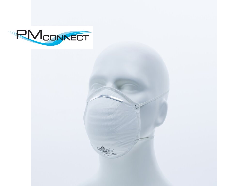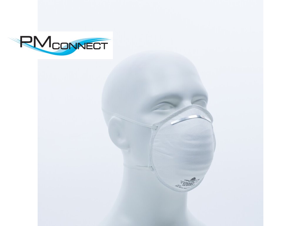 Jednorázová dýchací maska P2 bez ventiluMateriál : Syntetická netkaná textilie - Pěnové | Nosní klip : Ocel | Upevnění : Příruby | Krabice po 20