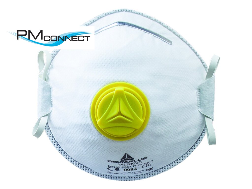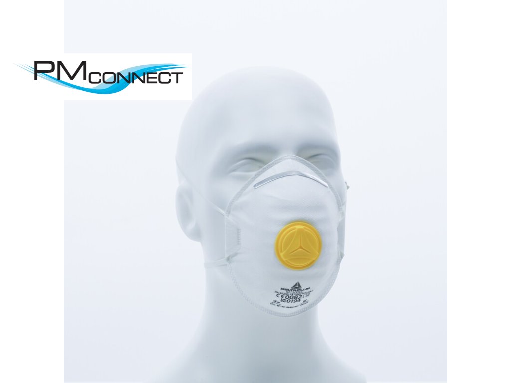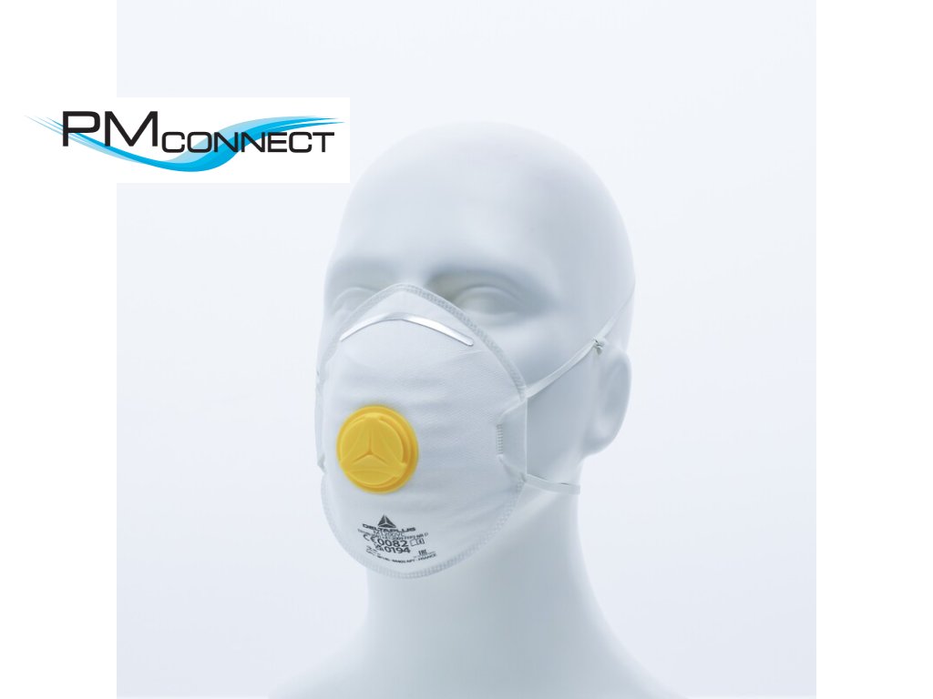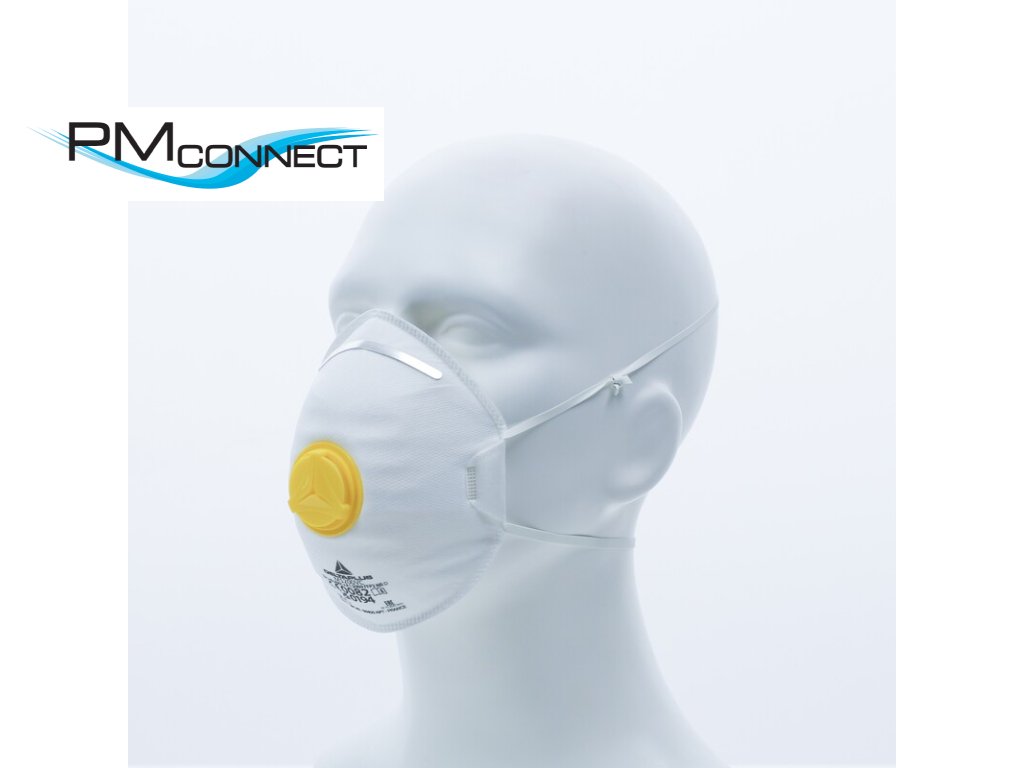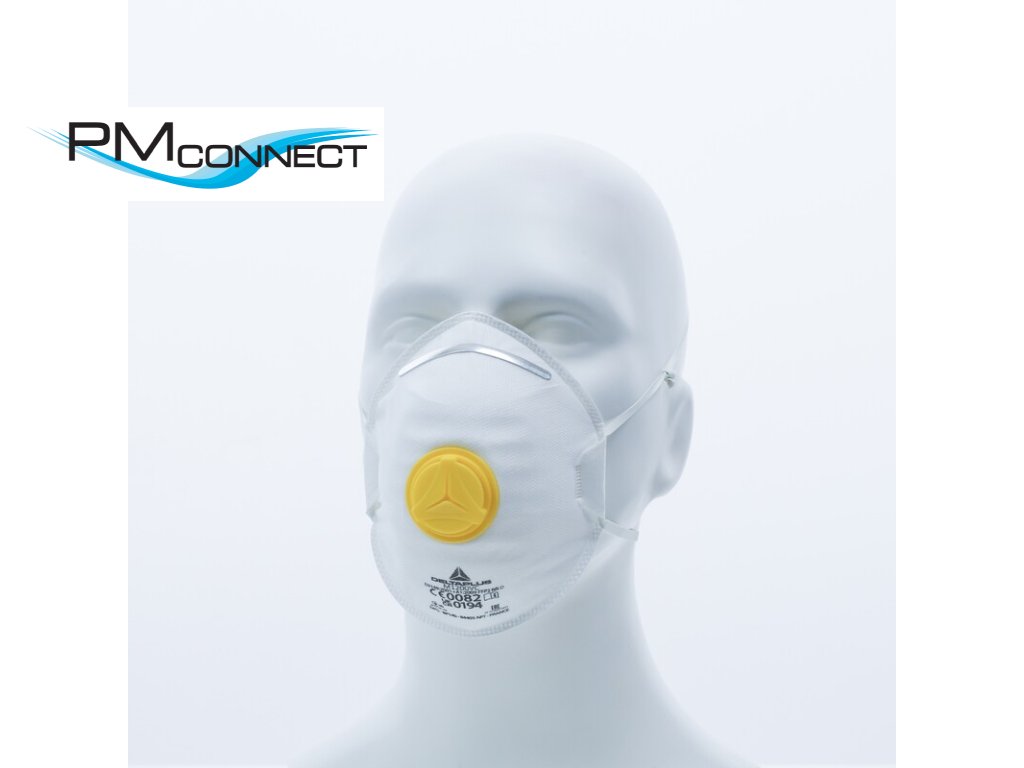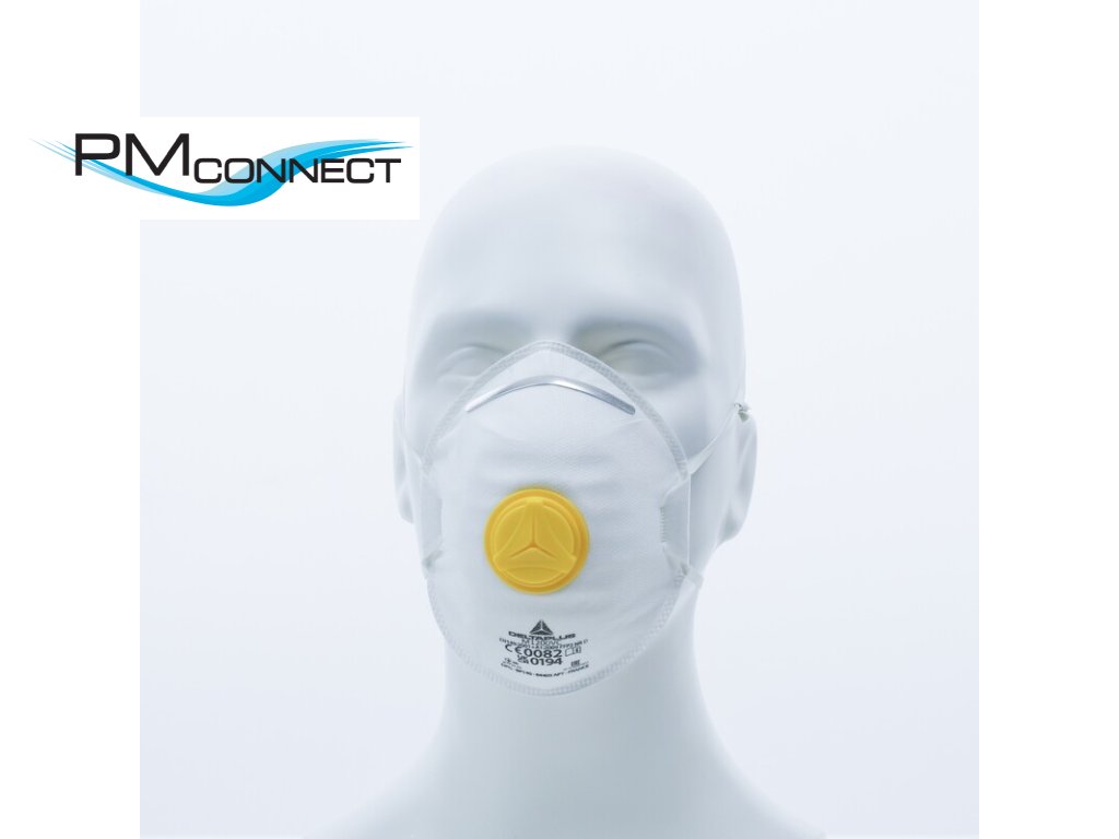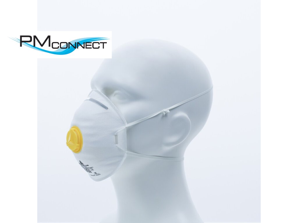 Jednorázová dýchací maska P2 s ventilemMateriál : Syntetická netkaná textilie - Pěnové | Nosní klip : Ocel | Upevnění : Příruby | Krabice po 10