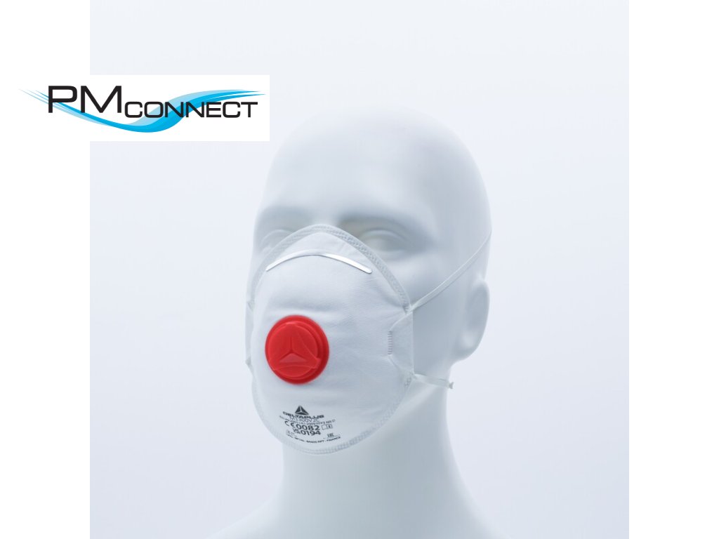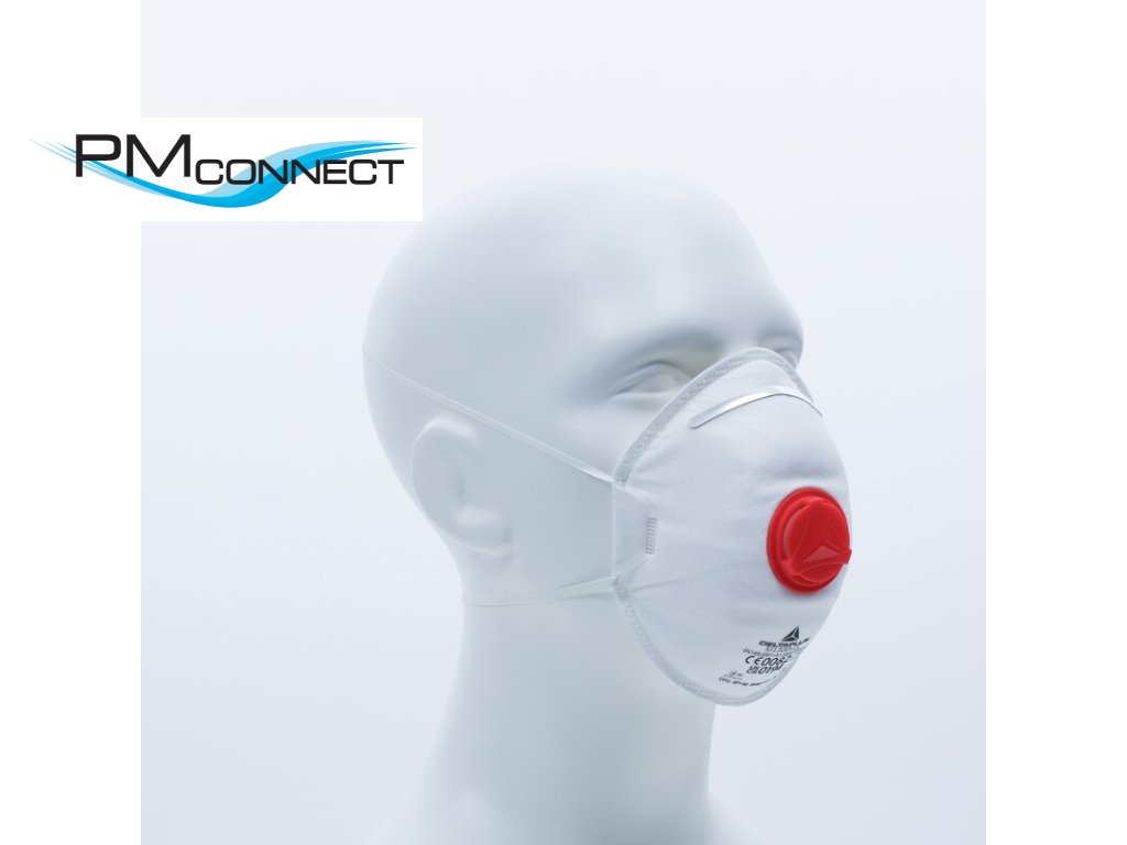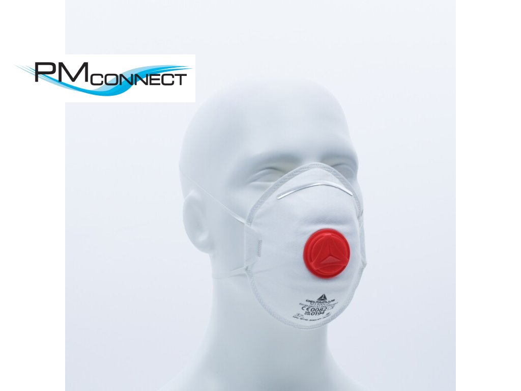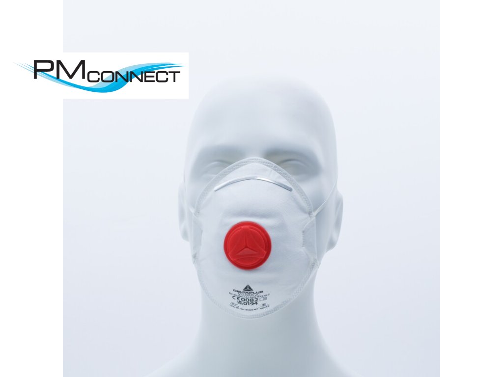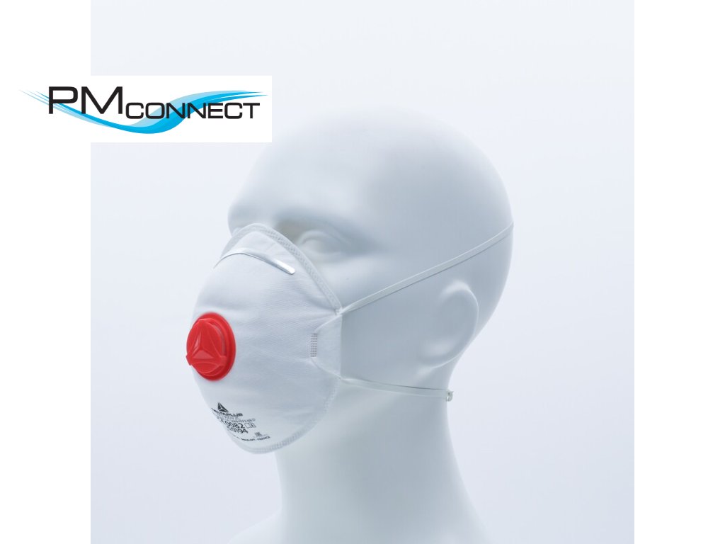 Jednorázová dýchací maska P3 s ventilemMateriál : Syntetická netkaná textilie - Pěnové | Nosní klip : Ocel | Upevnění : Příruby | Krabice po 10