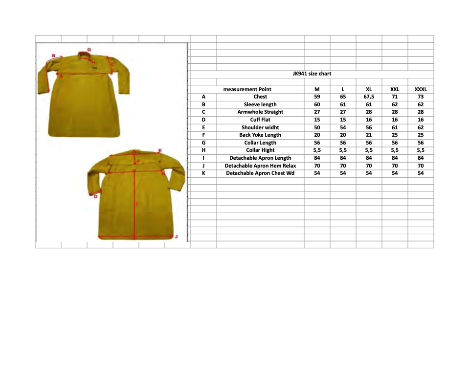 V souladu s EN ISO11611:2007 třída 2A1 Velikosti: M až XXXL