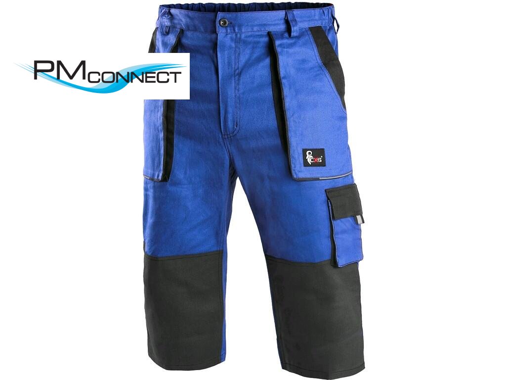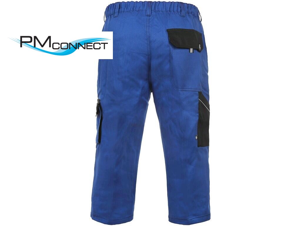 Pánské montérkové 3/4 kalhoty, pas s poutky na opasek, vzadu do gumy, přední kapsy, boční kapsa na svinovací / skládací metr, boční kapsa na mobil / peněženku, zdvojená kolena, zadní kapsa s klopou, reflexní doplňky. Doporučené použití: letní pracovní oděv, stavebnictví, lehký průmysl, logistika, skladová manipulace, autoservisy, údržba, montáže, zemědělství, zahrada, hobby.Doplňkové parametry