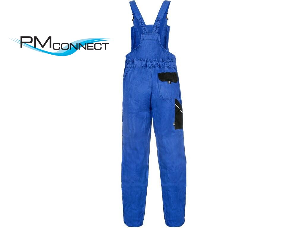 Pánské montérkové kalhoty s náprsenkou zateplené flanelem, náprsní kapsa na zip, pas vzadu do gumy, přední kapsy, boční kapsa na svinovací / skládací metr, boční kapsa na mobil / peněženku, zdvojená kolena, zadní kapsa s klopou, šle s gumou vzadu, reflexní doplňky. Doporučené použití: stavebnictví, lehký průmysl, logistika, skladová manipulace, autoservisy, údržba, montáže, zemědělství, zahrada, hobby.Doplňkové parametry